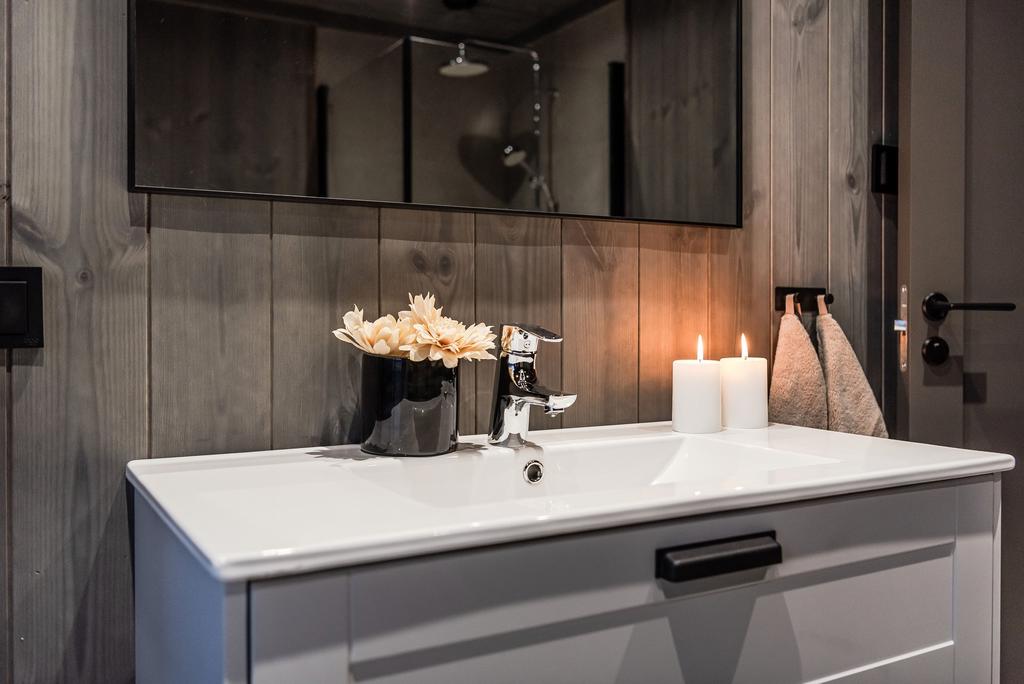 + 1 rymligt badrum med dusch, självklart med bastu. I bastun njuter ni av en spektakulär utsikt mot liften. På övre plan finns ett badrum till med dusch. I entrén finns en separat WC.