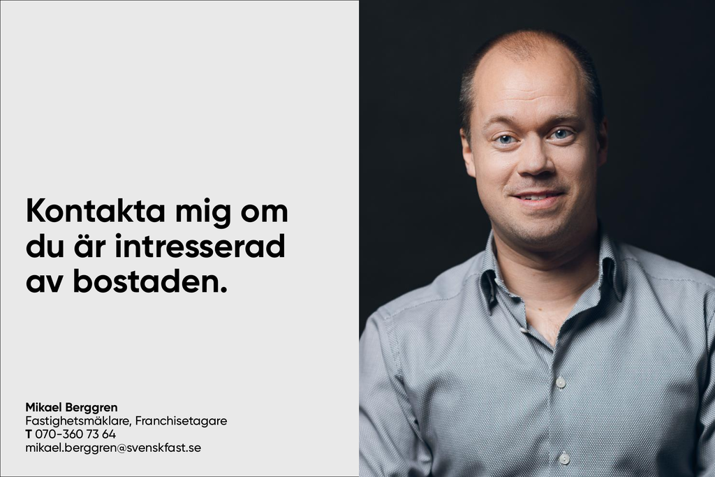 Med hjälp av vår boendekostnadskalkyl får du snabbt en uppfattning om vad den här bostaden skulle kosta dig per månad. Du kan enkelt justera siffrorna utifrån dina personliga förutsättningar. Kontakta mäklaren om du vill ha hjälp med beräkningen.