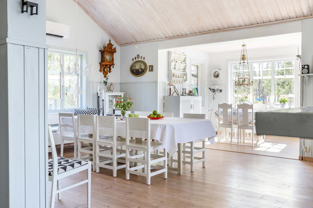 Snyggt arkitekt ritat fritidshus med permanent standard. Magiskt havsläge med egen sandstrand!