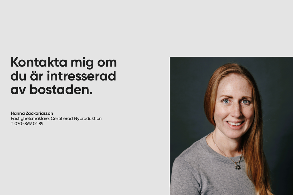 Ansvarig mäklare erbjuder dig som ska köpa bostad en skriftlig beräkning av dina personliga boendekostnader. Kontakta mäklaren om du önskar en boendekostnadskalkyl.
