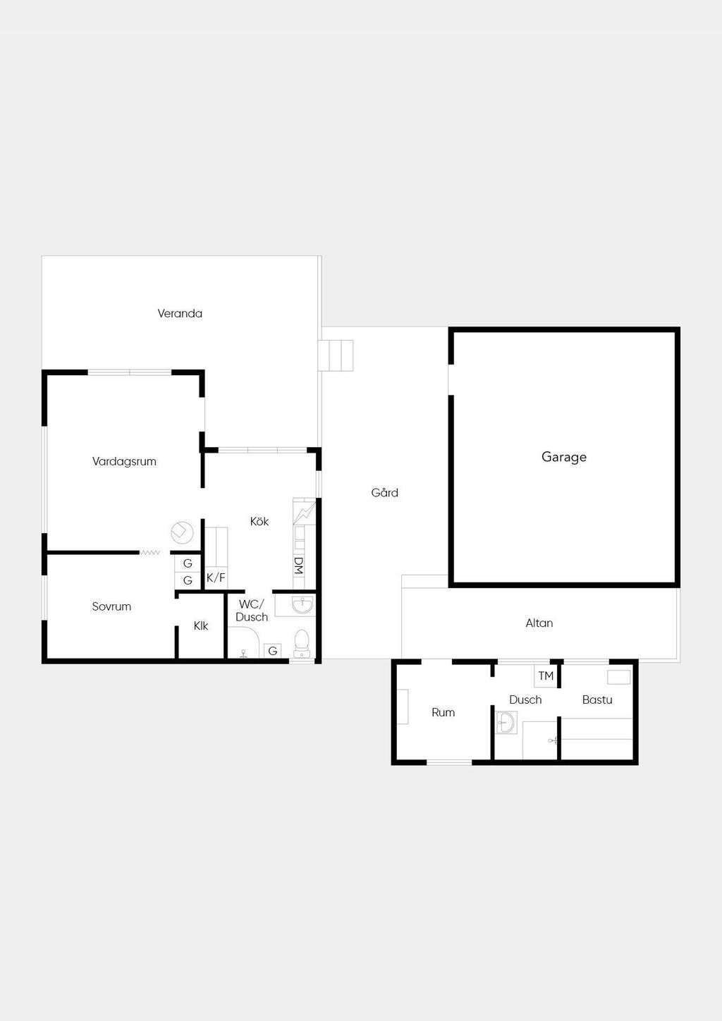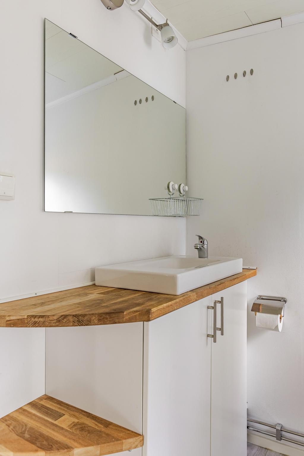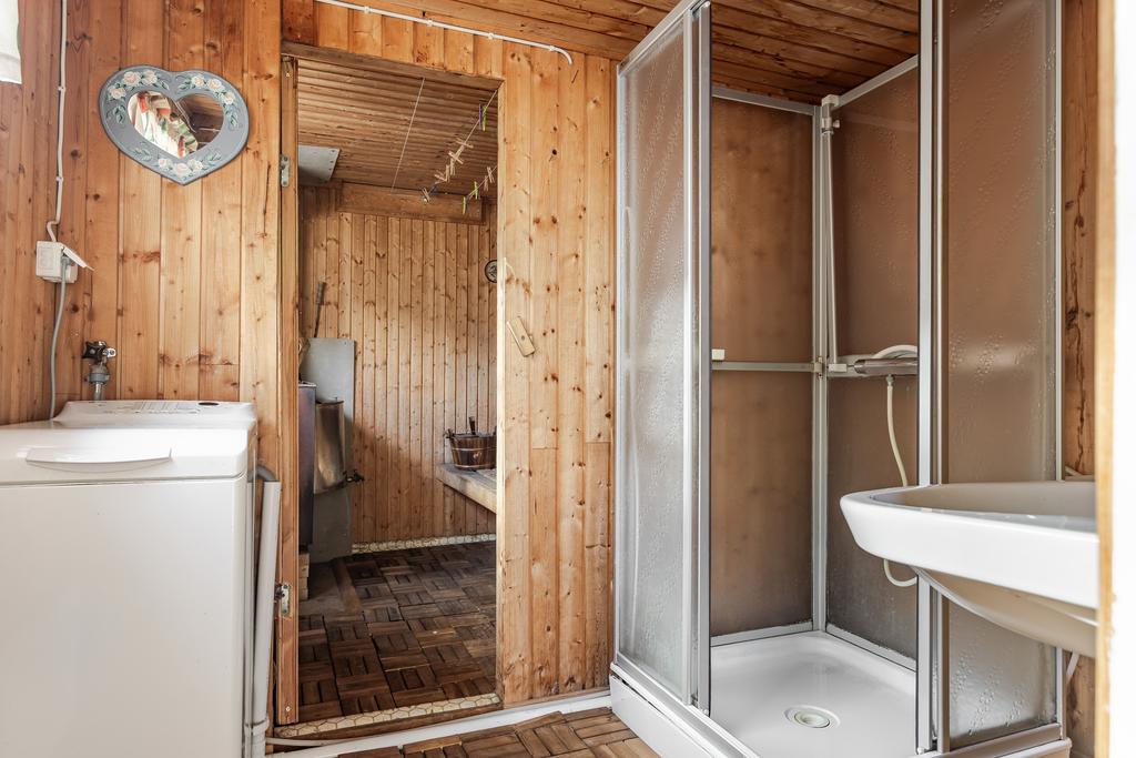 Utöver bostadshuset finns en bastustuga med tvättavdelning och dusch, vilket ger extra komfort och funktionalitet.