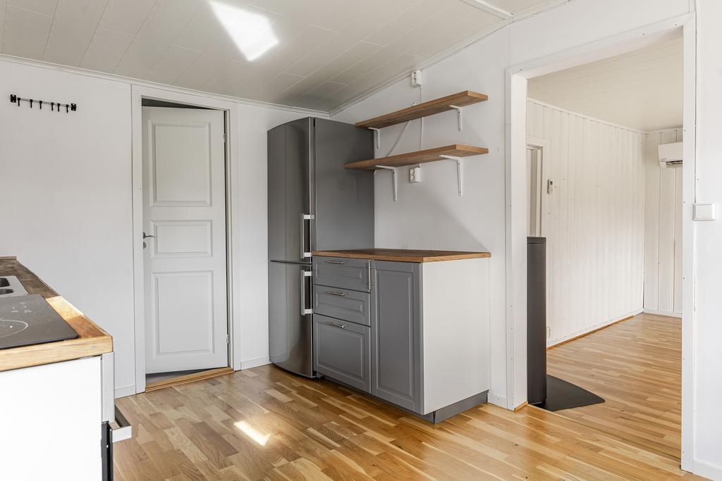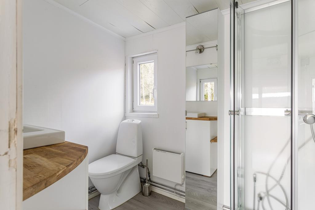 Stugan har ett nytt, modernt kök och ett nyrenoverat badrum, vilket ger en bekväm och bekymmersfri vardag. Ljusa, fräscha ytskikt förstärker känslan av rymd och trivsel. I vardagsrummet, som har en fantastisk utsikt över sjön, finns en vedkamin som bidrar med både värme och stämning under årets kallare månader.