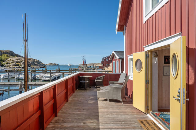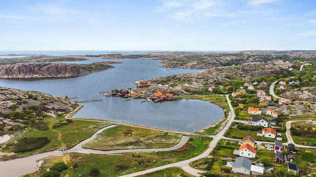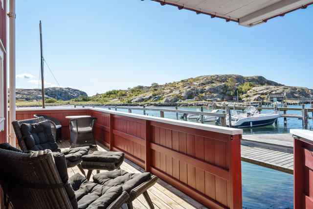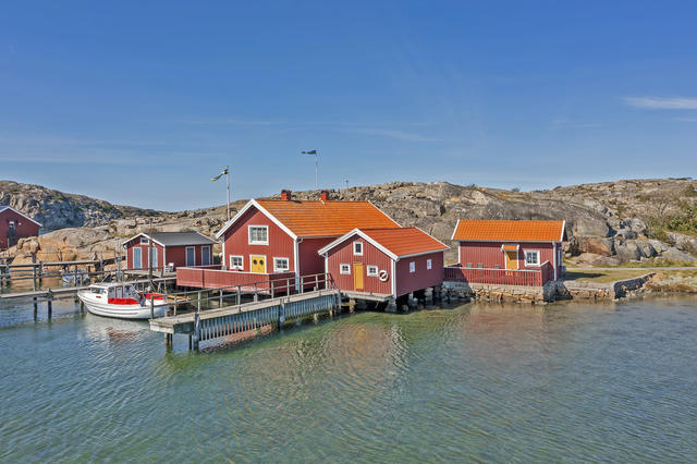 Idyllisk strandfastighet i Heestrand söder om Hamburgsund med sjöbod och brygga