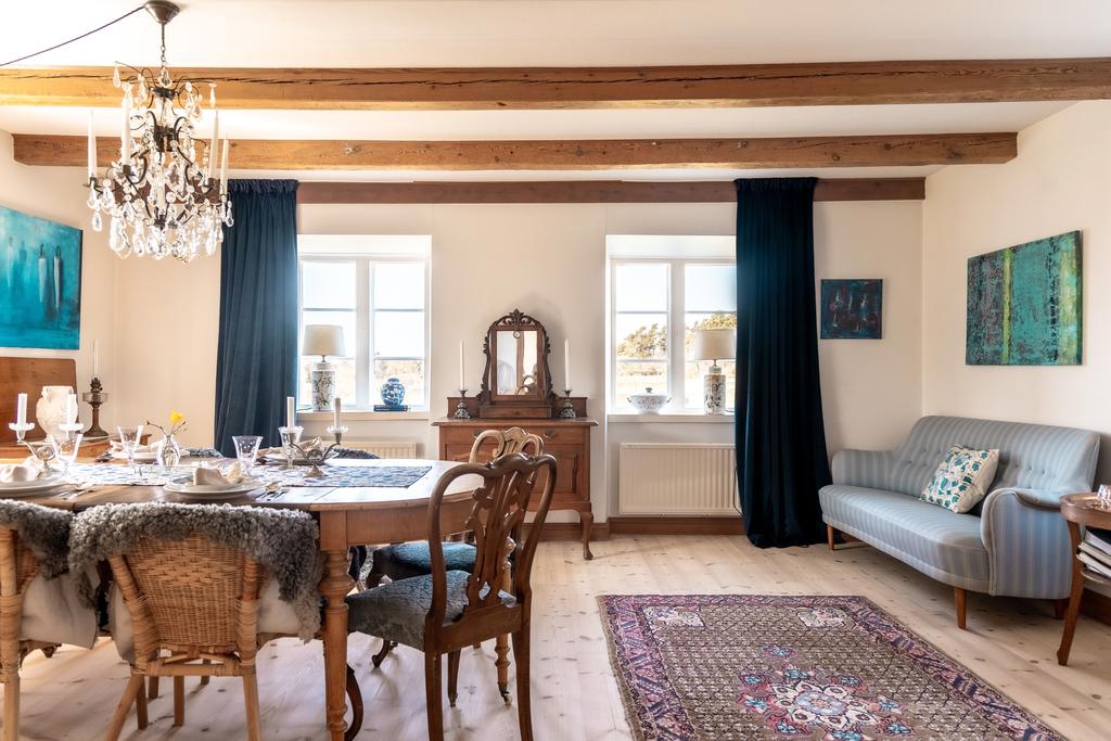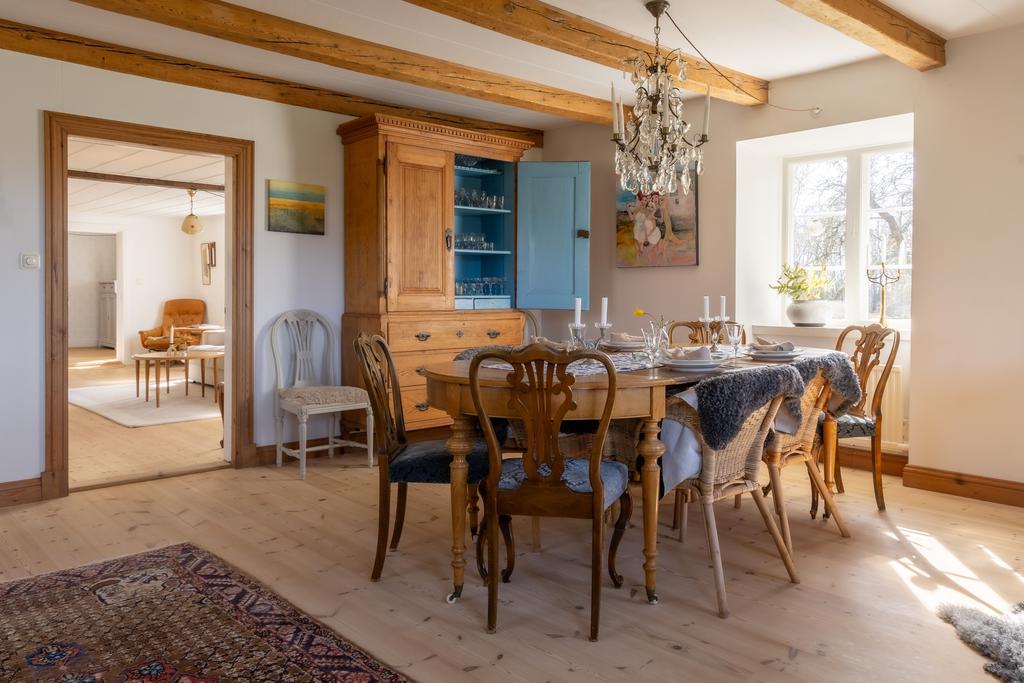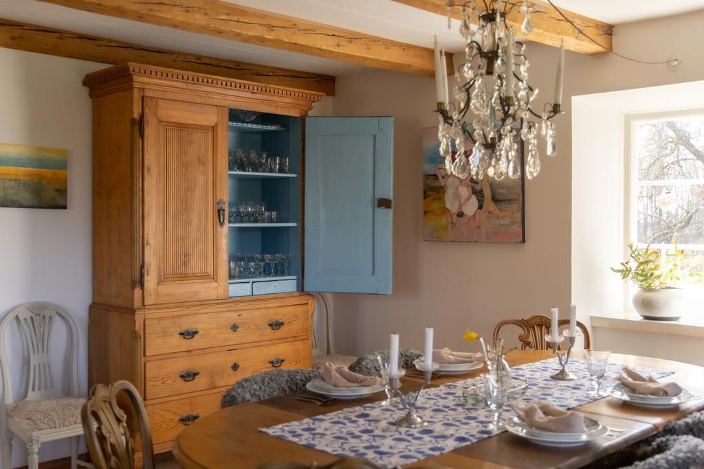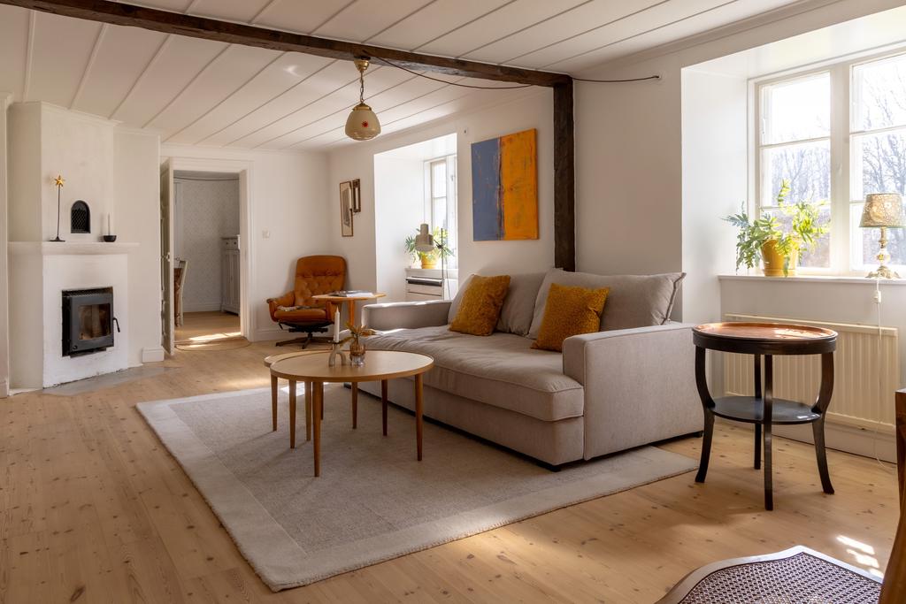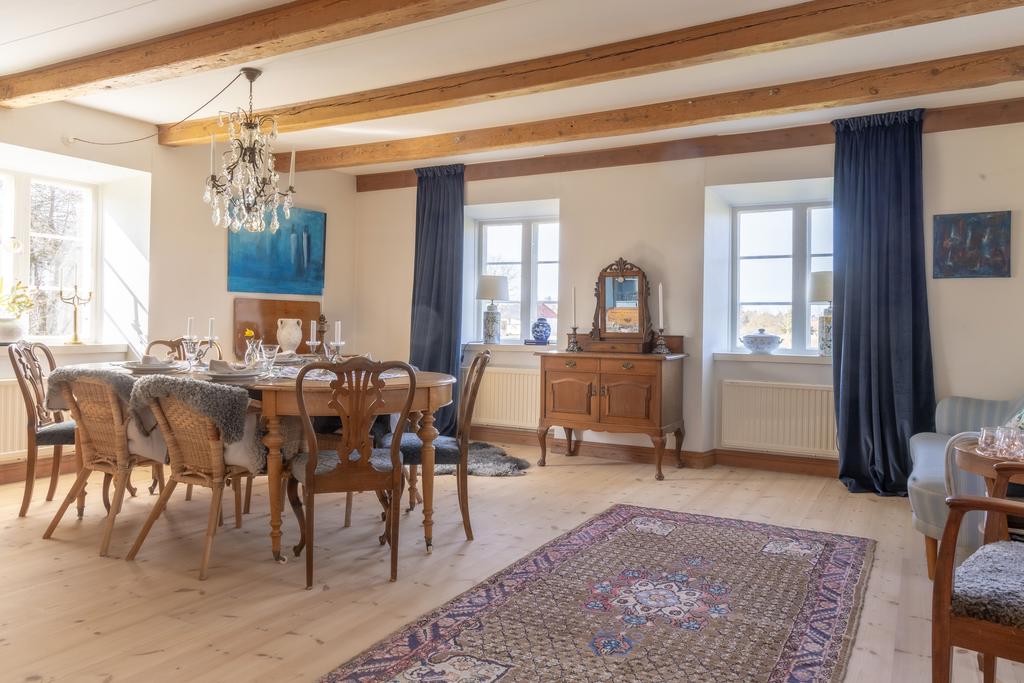 Mangårdsbyggnaden har under senare år varsamt renoverats med respekt för husets ursprung. Här finns generösa sällskapsytor med synliga bjälkar, trägolv och eldstäder som ger en varm och inbjudande känsla. Köket renoverades 2019 med nytt golv och golvvärme samt ny rördragning, och både badrum och flera rum har uppdaterats löpande. Under 2020 genomfördes även en omfattande takrenovering med tilläggsisolering.