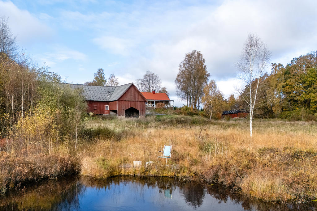 Runt gården breder varierade marker om 15,5 ha ut sig – skog som ger egen ved i många år framåt, bär- och svamprika marker där hösten bjuder på kantareller, hjortron från skogens skafferi. Öppna hagar där solen vandrar över landskapet under dagens lopp. För hästar i sommarhagen, odling i den påbörjade permakulturträdgården vid dammen, jaktmarker som ger både gemenskap och naturupplevelser. En egen sjö utan strandskydd där ni kan lägga i brygga, husbåt eller kanske bygga något intill vattnet?