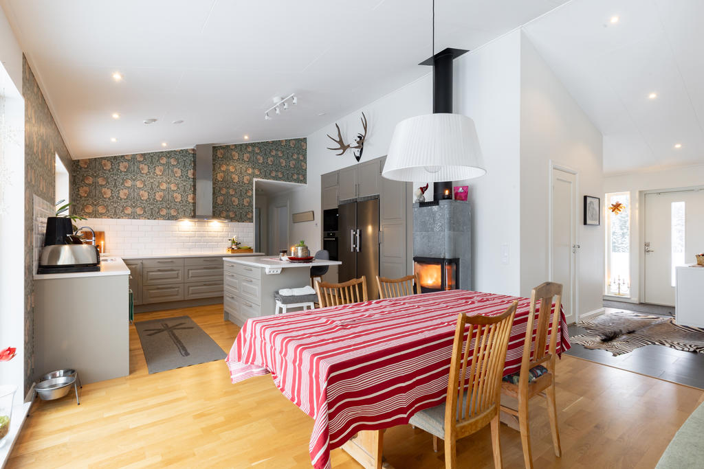 Det nybyggda huset är uppfört med fokus på kvalitet och hållbarhet. Här möts du av ljusa, öppna ytor, stora fönster som släpper in naturen, braskamin och ett generöst kök som bjuder in till både vardagsliv och fest. Tre rymliga sovrum, separat vardagsrumsdel perfekt för barnen och två stora badrum. Vattenburen golvvärme, energieffektiva lösningar och moderna bekvämligheter gör detta till ett hem att trivas i året runt. Den stora altanen i söderläge med milsvid utsikt över fjällen sätter extra plus på denna bostad.