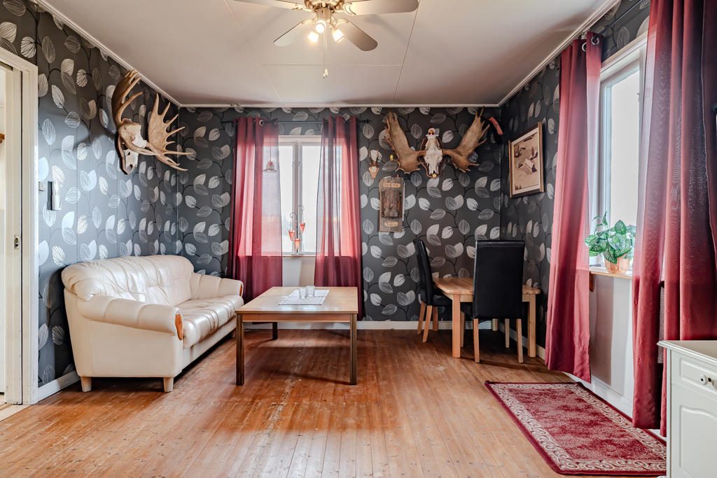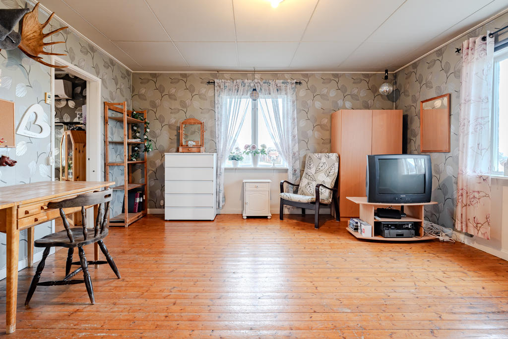 Bostadshuset erbjuder generösa ytor och kan med fördel användas som generationsboende, eller så skapar du ditt eget drömhem. Här finns charmiga detaljer som en mysig öppen spis som ger värme och karaktär.