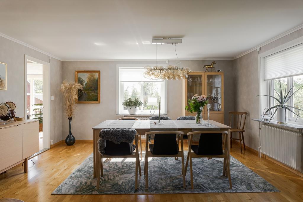 Mangårdsbyggnaden har totalrenoverats och byggts till med stor omsorg om husets ursprungliga karaktär. Samtidigt har bostaden moderniserats med en mer funktionell planlösning och bekvämligheter som uppfyller dagens höga krav på komfort och boendestandard. Resultatet är ett hem där klassisk gårdscharm möter modern livskvalitet.