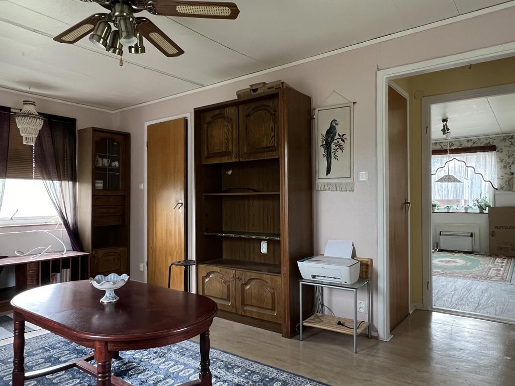 Det andra huset är ett enplanshus byggt omkring 1977–1978 och uppskattas vara ca 115–120 kvm stort. Här finns ett luftigt kök, två sovrum, badrum samt ett generöst allrum. Det tidigare dubbelgaraget har förvandlats till hobby- eller gästrum, vilket ger flexibilitet för olika behov – som tonårsrum, hemmakontor eller gästande familj. Här är det bara fantasin som sätter gränserna.
