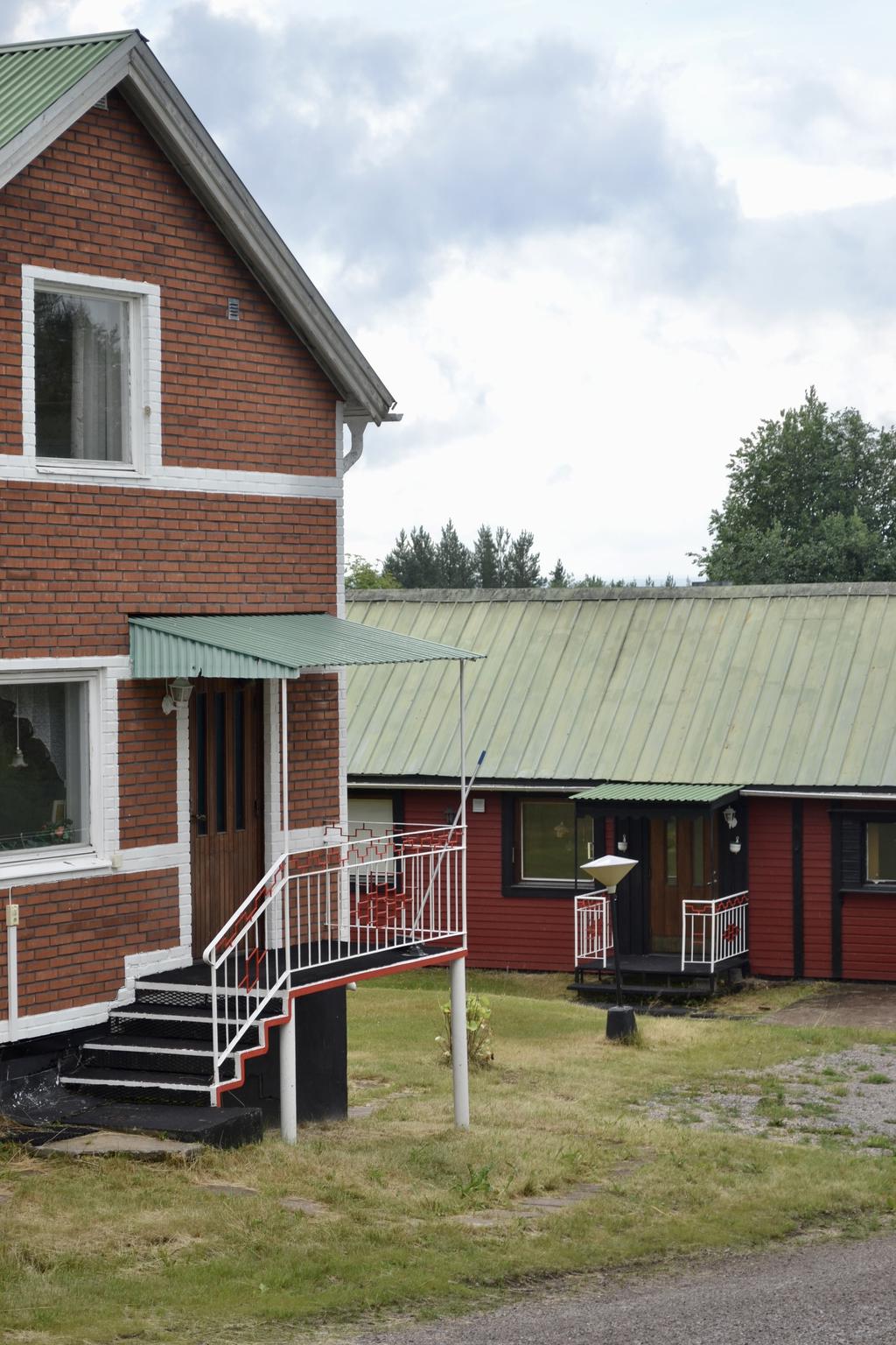 Det första huset är ett charmigt tvåplanshus med källare, byggt i slutet av 1940-talet. Här finns idag två separata lägenheter, en på varje plan, båda med kök, allrum och eget badrum. Perfekt för uthyrning, generationsboende eller företag som söker boende för personal. Alternativt kan huset enkelt användas som familjevilla, där du får tillgång till två sovrum och wc på övervåningen, samt ett stort kök, vardagsrum och badrum på entréplanet. Huset har tegelfasad, plåttak och en källare under halva byggnaden med infrabastu och goda förvaringsmöjligheter. Även krypgrunden erbjuder extra utrymme för förvaring.