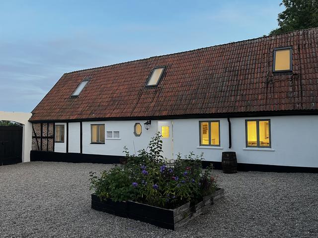 Ladugården är byggd i vacker Komstadsten, en lokal kalksten känd för sin styrka, tidlösa skönhet och historiska karaktär. Det ger byggnaden både en robust struktur och en genuin känsla som förhöjer gårdens helhetsintryck. Materialet har använts i skånska byggnader i århundraden och är lika uppskattat idag för sin hållbarhet och estetiska kvalitet.