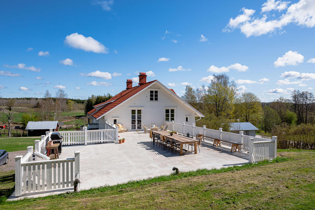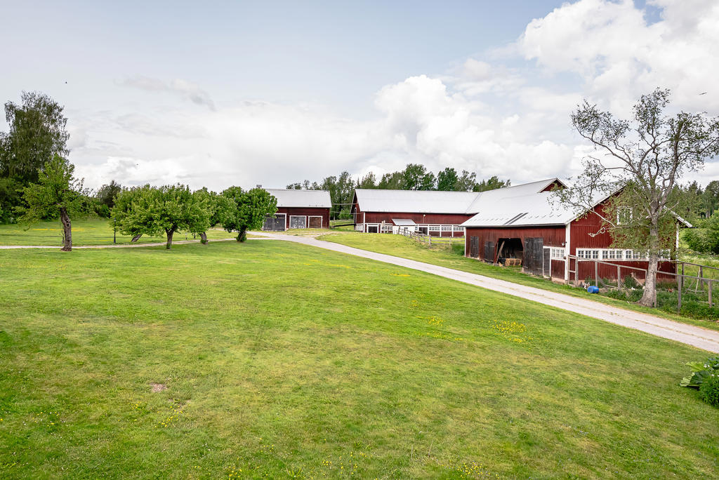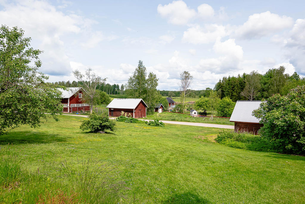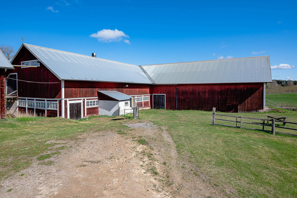 På gården finns flera uthus med stora möjligheter. En stor lada med inredd festvåning bjuder in till sociala tillställningar året om, och ett charmigt gästhus ger plats för övernattande gäster eller verksamhet. I stallet finns redan boxar – perfekt för dig med hästdrömmar eller som söker ett mindre hästgårdsboende.