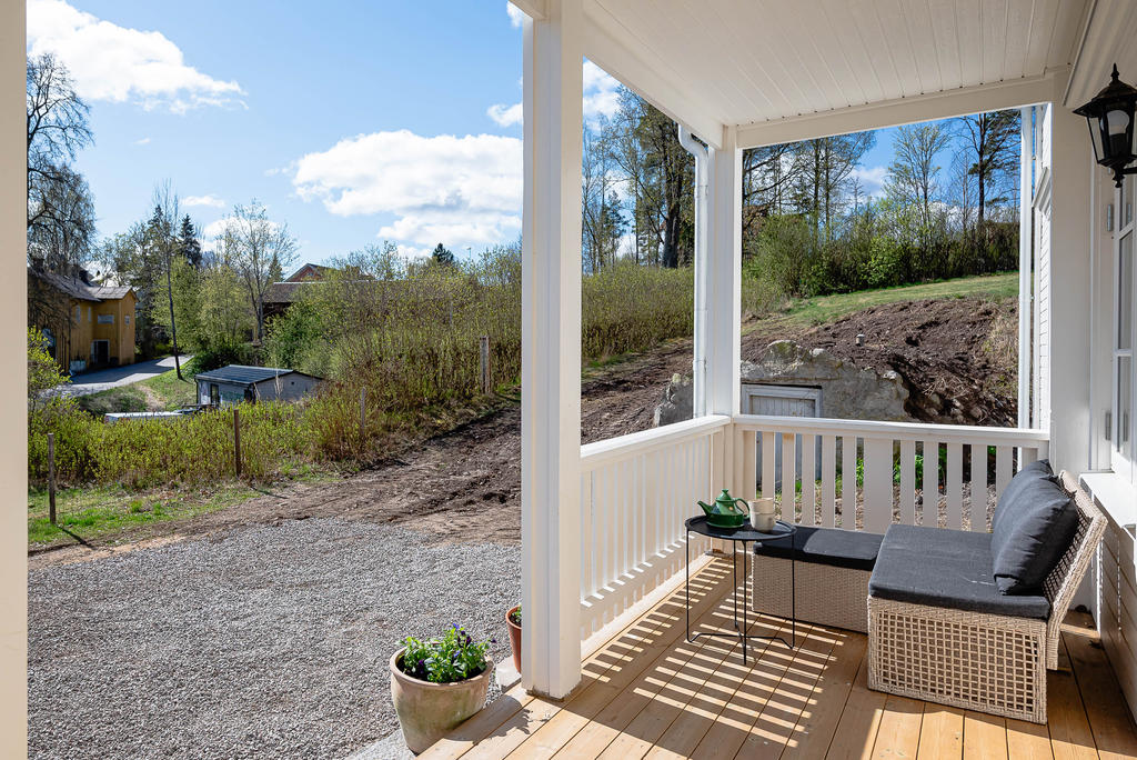 Bostadshuset har fått nytt liv i en stil som varsamt lyfter fram den historiska charmen – från slipade trägolv till ett smakfullt lantkök och helkaklade badrum med klinkergolv. Alla ytskikt är uppdaterade, och tak, fönster och värmeanläggning är bytta. Dessutom har fyra eldstäder renoverats, varav två har fått moderna insatser – vilket bidrar både till trivsel och energieffektivitet.