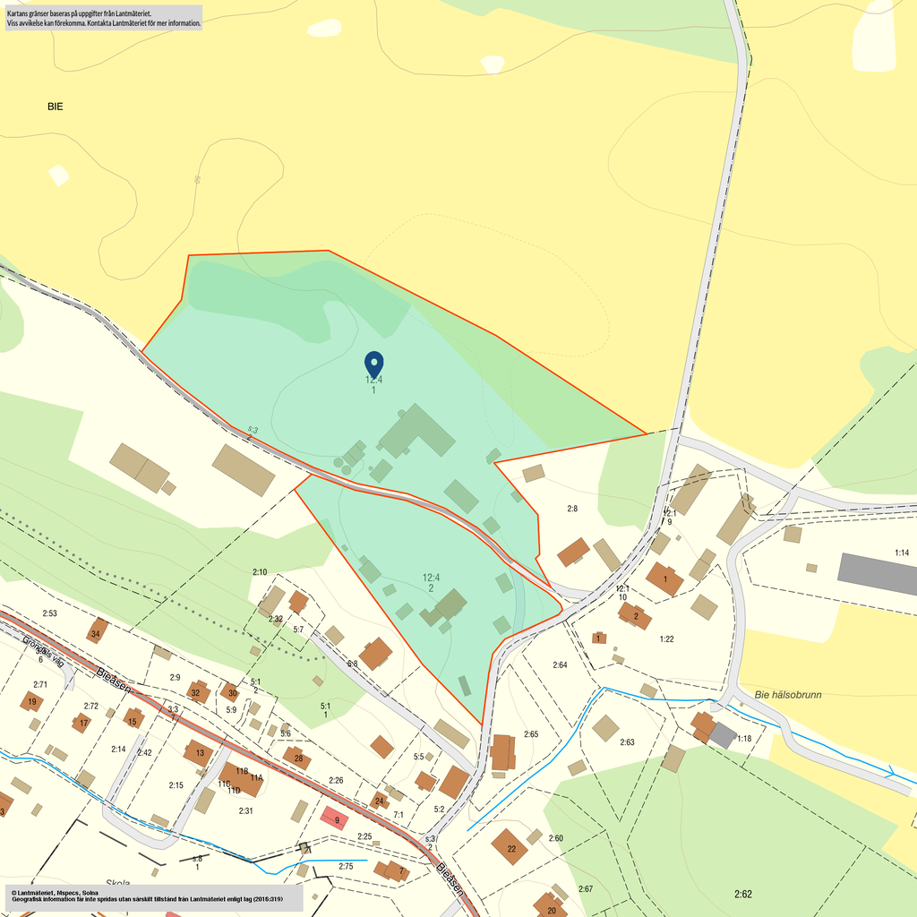Gården ligger precis intill Bie Brunnspark – ett kulturhistoriskt smycke som på 1800-talet gjorde Bie till en välkänd kurort. I den bevarade parken finns två vackert renoverade paviljonger, den götiska och den kinesiska källan, utsiktsplats och promenadvägar kantade av skyltar som berättar om den rika brunnsepoken. Här möts historia och natur i en rofylld atmosfär som förhöjer upplevelsen av att bo just här.