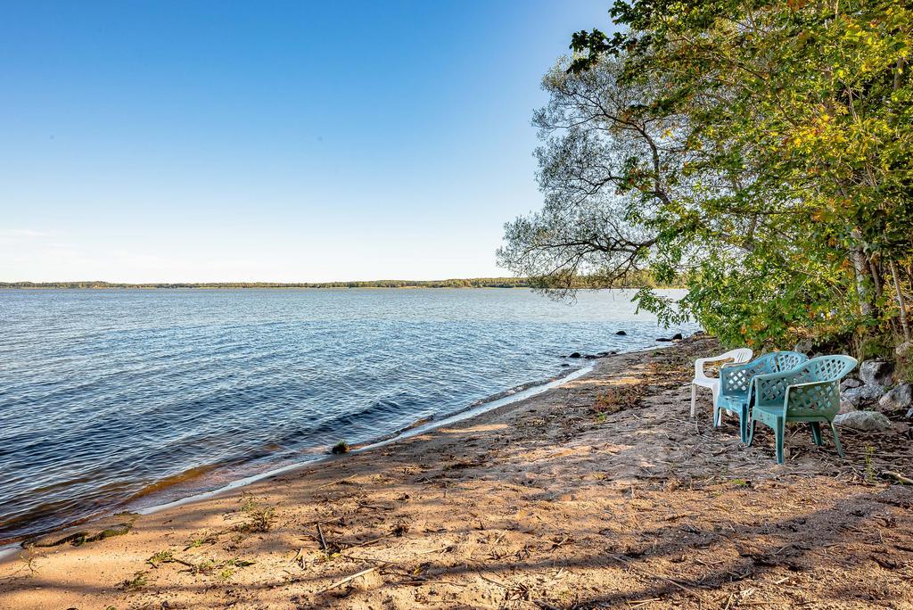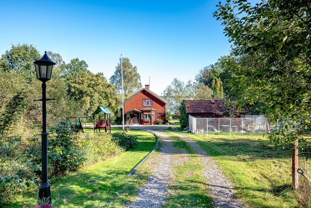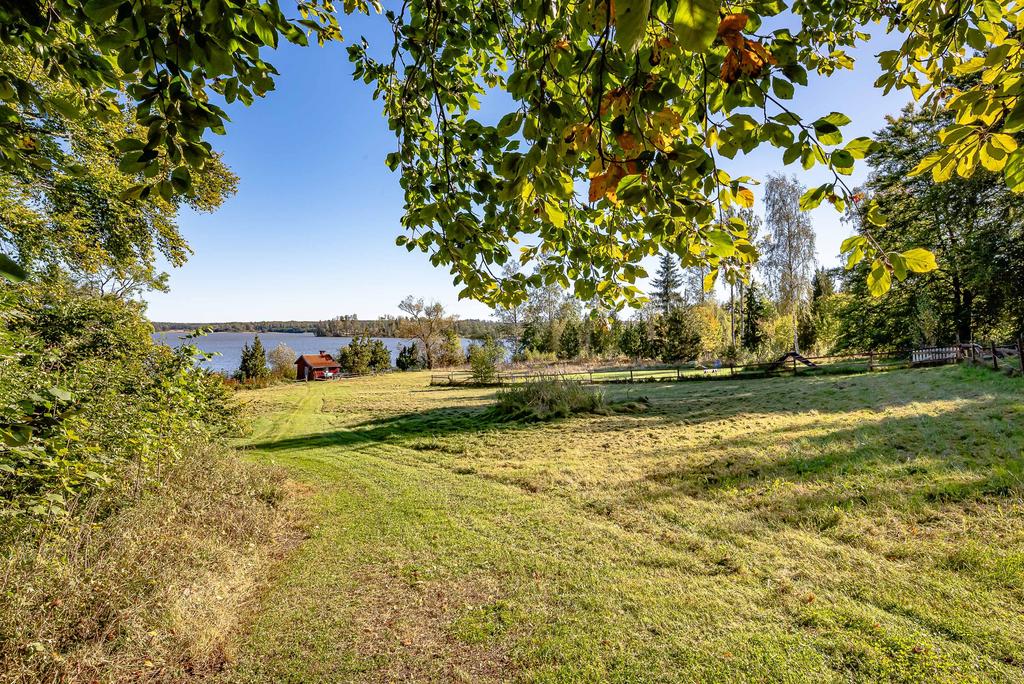 Den 2,8 hektar stora tomten sluttar vackert ner mot sjön. Vägen ner till huset går genom en liten skogsdunge och slutar vid carporten, som tidigare använts som lösdrift för häst. Runt bostaden finns en trädgårdstomt, medan marken mellan huset och sjön består av hage och äng. Här finns gott om plats för odling, djurhållning eller bara stilla njutning av naturen. Från altanen på husets sjösida blickar du ut över vattnet – en självklar plats för långa sommarkvällar.