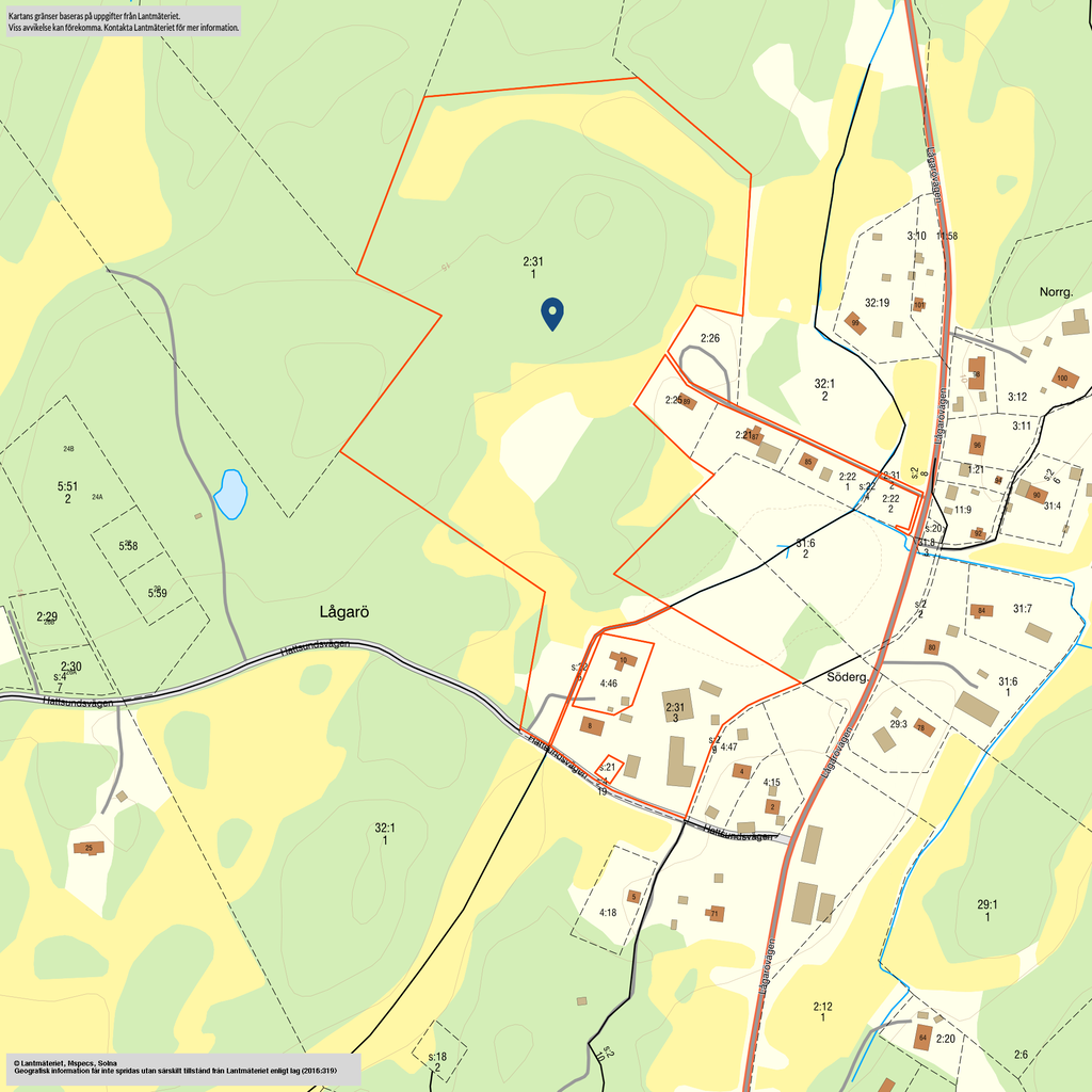 Betesmarken fördelas just nu på två hagar i varierande storlekar varav en har tillgång till det rymliga vindskyddet i dagsläget. Elstängsel finns delvis i hagarna. Lampor finns närmast stallet.