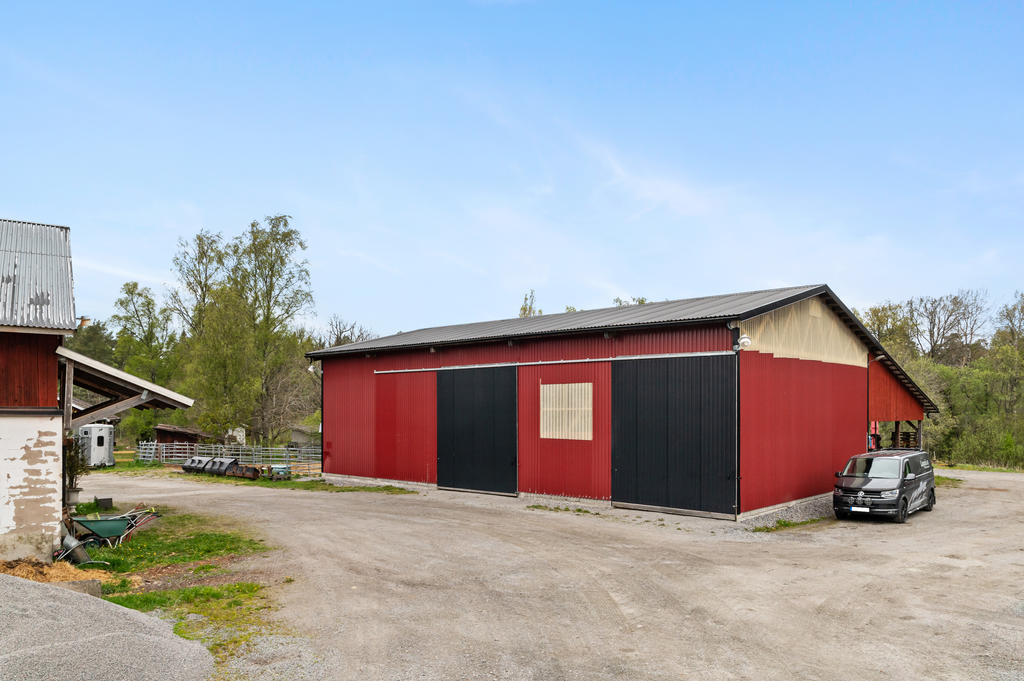 Denna byggnad är 240 kvm med väggar av plåt och gjuten platta och är byggd 2013. I mitten på ena långsidan finns ett teknikrum som är isolerat. Här finns alla möjligheter för användningsområde, bara fantasin sätter stopp. Takhöjden är ca Med andra ord en rymlig och praktisk lösning för förvaring av fordon, utan också en fantastisk möjlighet för hobbyverksamhet eller egen företagsdrift.