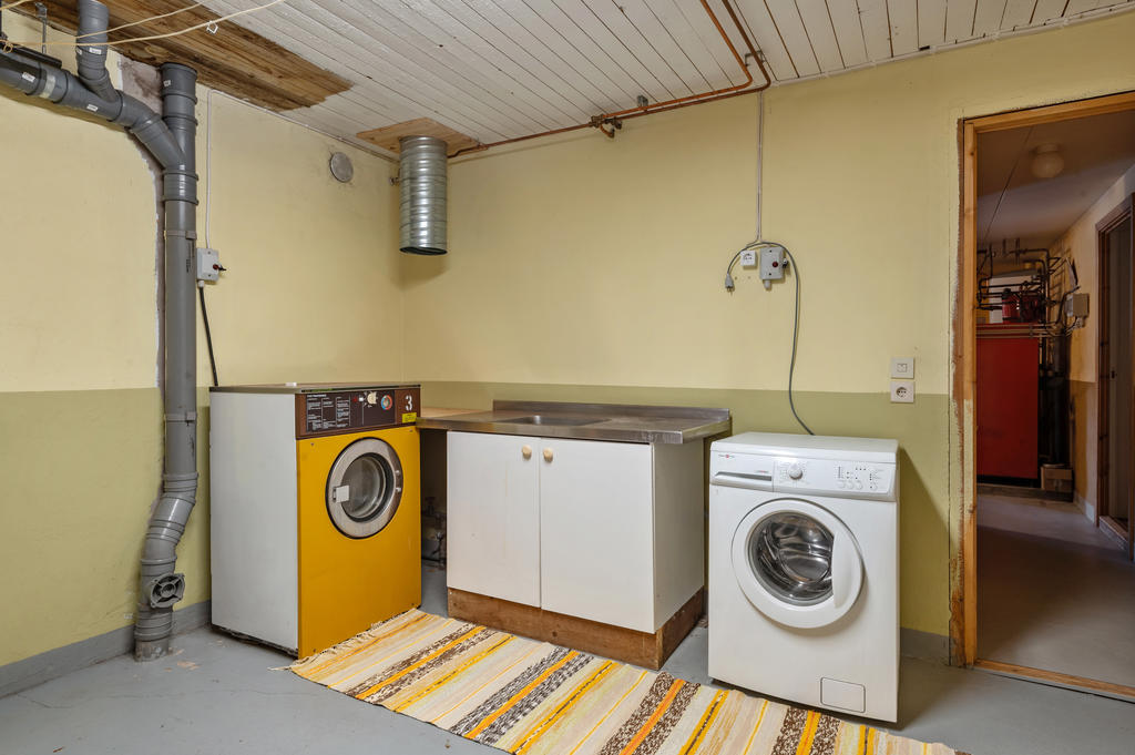 I källarplanet finns pannrummet, tvättstuga extra wc och ett gästrum. Det finns även en mindre dörr in till grundutrymmet. Källaren består av en mindre del av huset. Fiber finns indragen till huset.