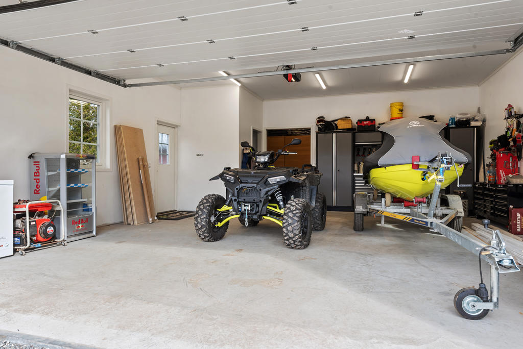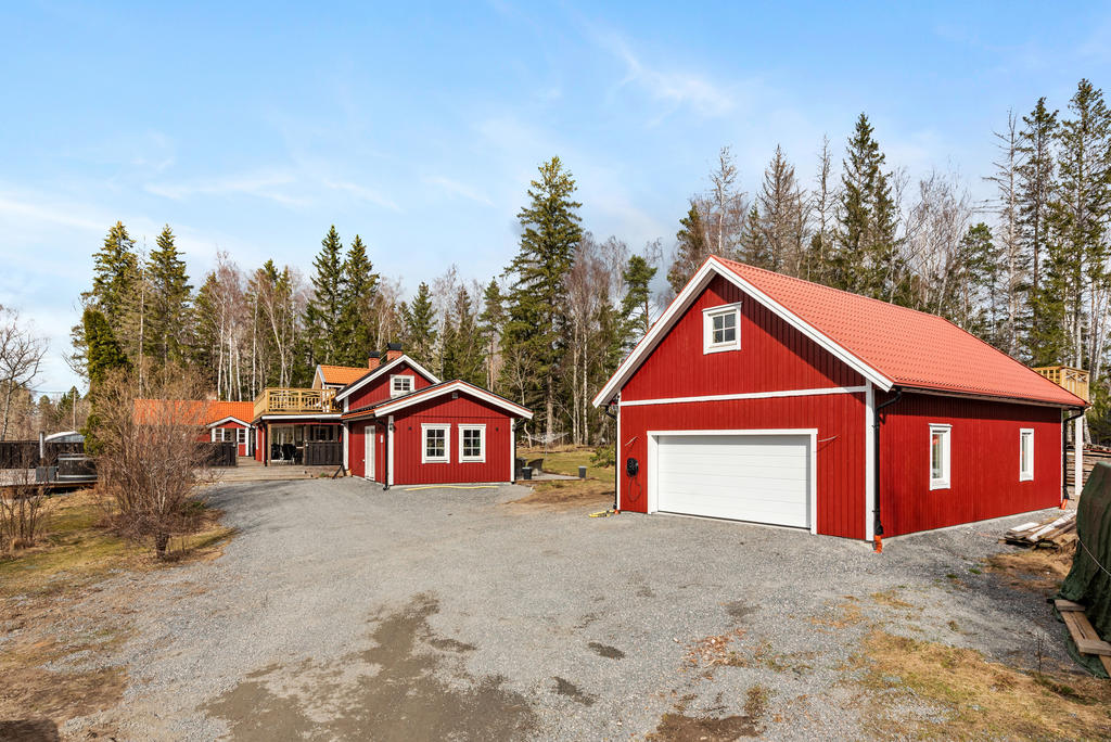 På fastigheten finns dessutom ett nybyggt dubbelgarage om ca 80 kvm med generösa förvaringsutrymmen. Ovanpå garaget finns en välplanerad lägenhet med rum, kök och duschrum – idealisk för gäster, uthyrning eller egen verksamhet.