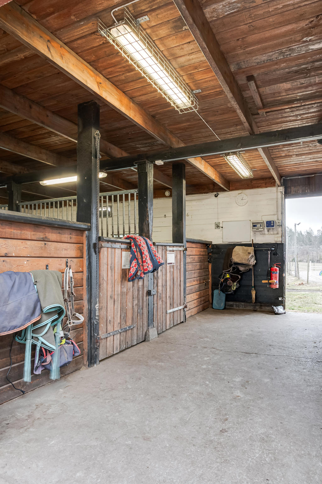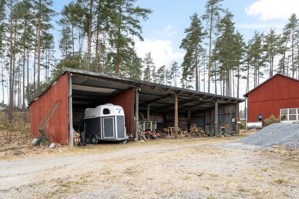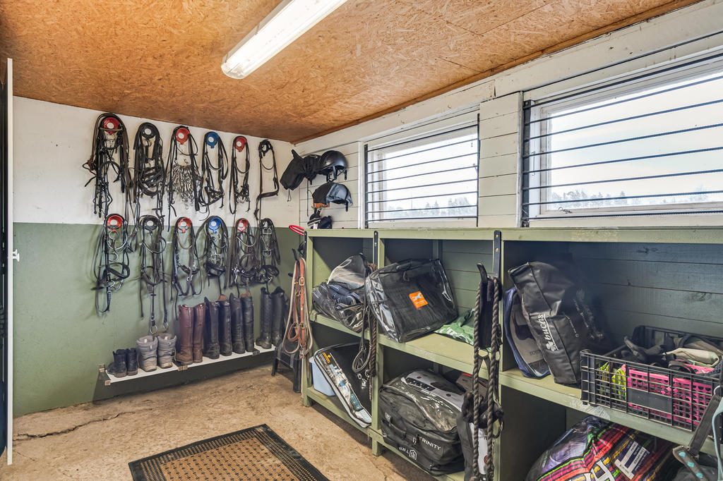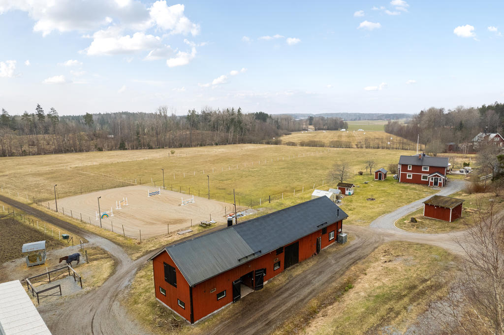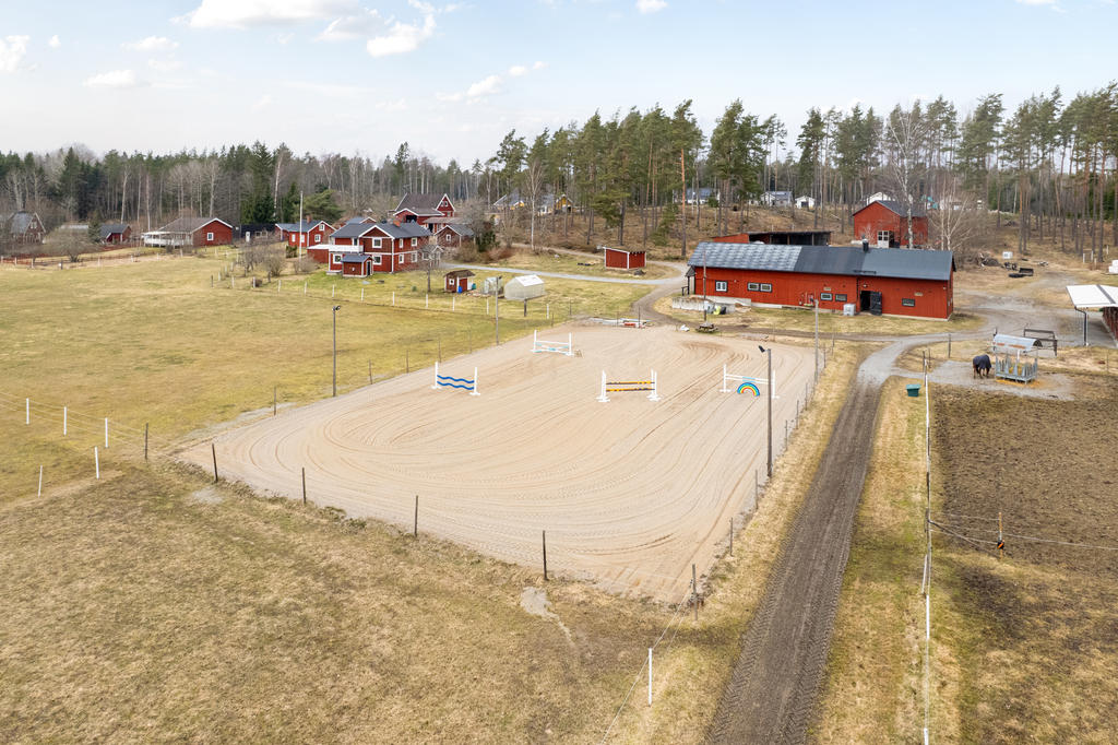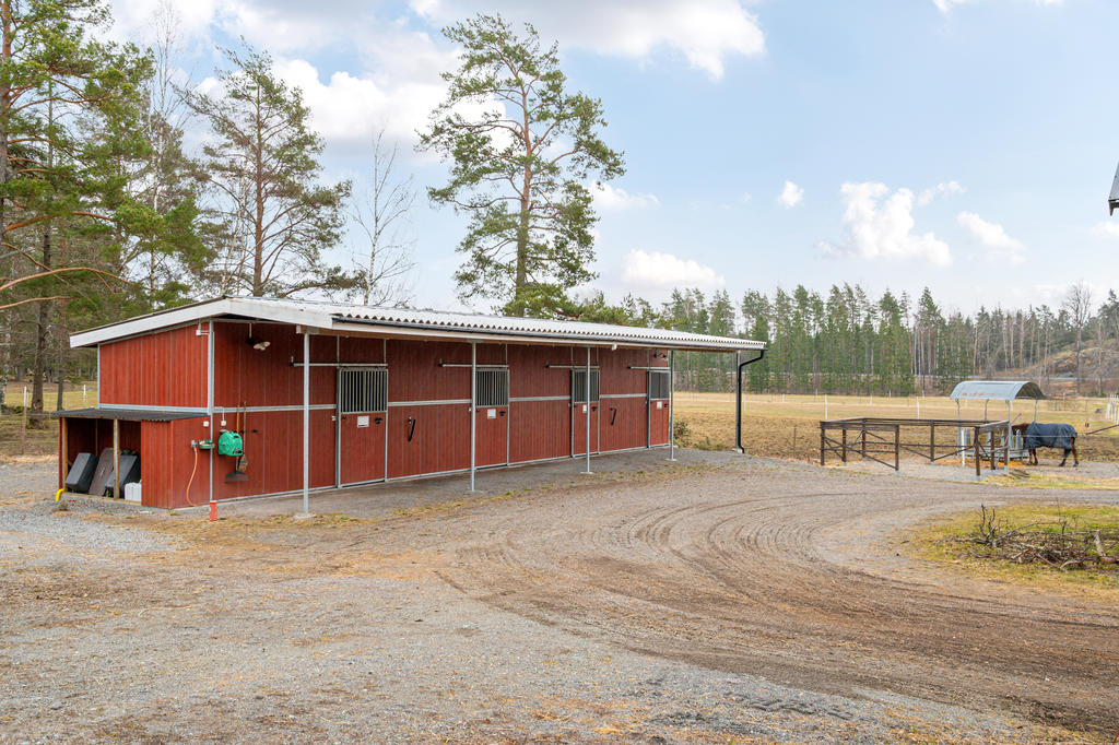 Hästanläggningen är välplanerad och erbjuder goda möjligheter för både mindre och större hästhållning. Lättarbetet stall med fyra boxar samt ytterligare fyra uteboxar och tillhörande utrymmen såsom nybyggd spolspilta, uppvärmd sadelkammare samt torkrum skapar en funktionell och smidig vardag. De öppna markerna i direkt anslutning till gården bidrar till en lättillgänglig hästmiljö med fin ridbana och flertalet stängslade hagar.