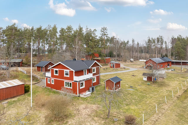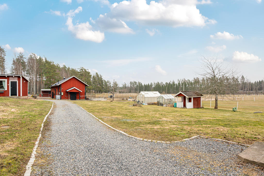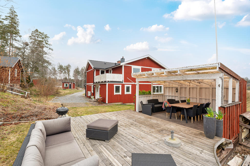 Utöver detta finns flera uppskattade komplementbyggnader som förhöjer gårdens helhetskänsla, såsom klubbhus, två växthus, lekstuga samt en altan med tak som blir en naturlig plats för avkoppling och sociala stunder med utsikt över omgivningarna.