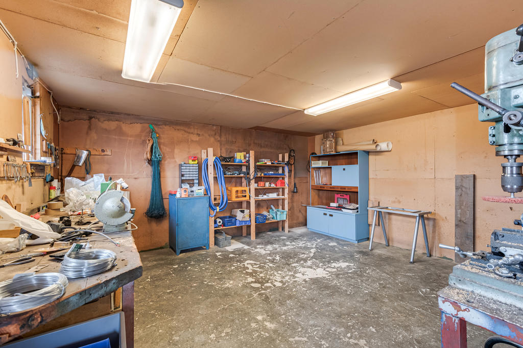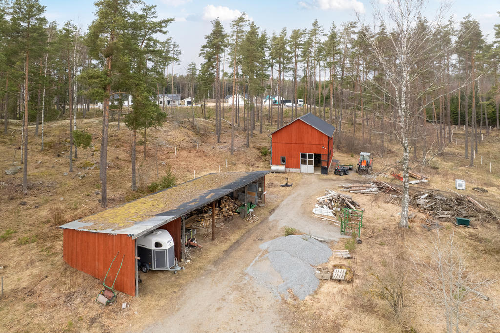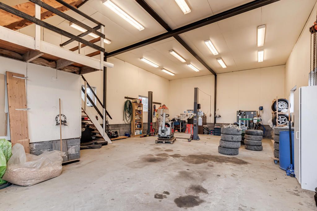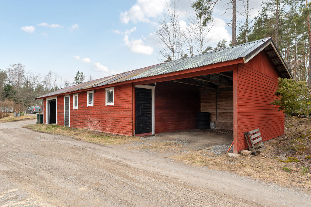 Gårdens ekonomibyggnader erbjuder gott om utrymme och många möjligheter med en rymlig maskinhall med övervåning samt en välutrustad garagelänga som rymmer både verkstad och garage. Här finns även vagnslider och flera praktiska utrymmen som underlättar både förvaring och arbetet i vardagen. På fastigheten finns dessutom en jordkällare samt ytterligare garageutrymmen.