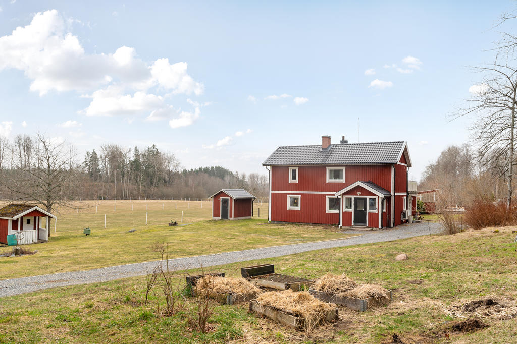 Gårdens huvudbyggnad om 160 kvm är fördelad på två plan med källare och erbjuder ett trivsamt boende för familjen. Tre rymliga sovrum och generösa sällskapsytor ger gott om plats för både vardag och umgänge.