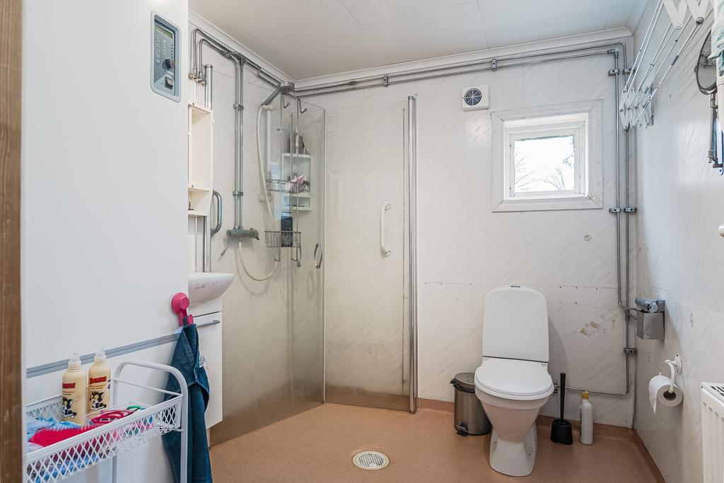 Bostadshuset är en smidig och lättskött villa utrustad med jordvärme, vilket ger både lägre driftkostnader och ett bekvämt boende. För den som uppskattar extra mysfaktor finns även en vedspis i köket att elda i. Den rymliga inglasade altanen blir en naturlig samlingsplats under stora delar av året. I huset finns möjlighet till upp till tre sovrum.
