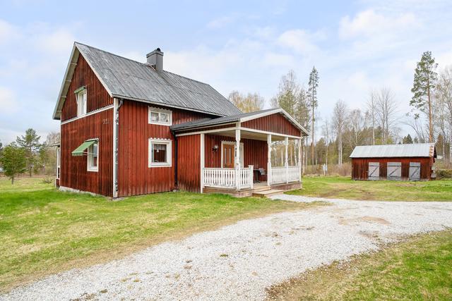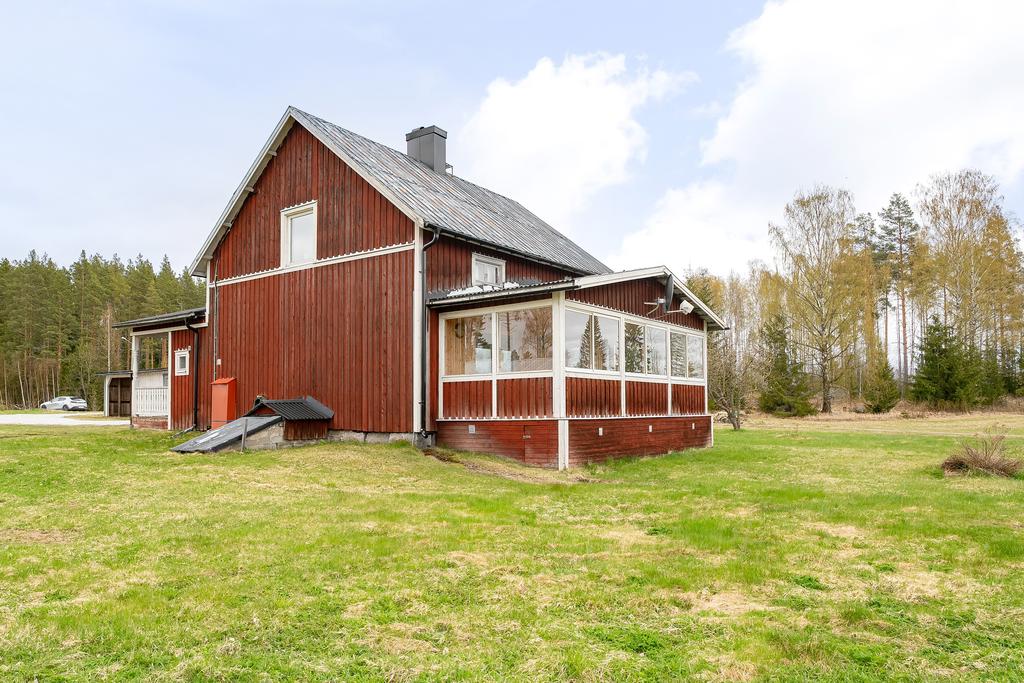 Här välkomnas du till en lantligt belägen gård med ett charmigt 1½-planshus i klassiskt rött med vita knutar. Fastigheten ligger längs en mindre byväg, omgiven av naturskön skog och med ett privat och rofyllt läge. Redan när du svänger in på gården infinner sig känslan av lugn och harmoni – här känns det lätt att komma hem.