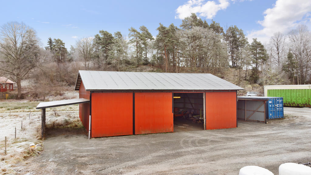 En rymlig maskinhall om ca 190 kvm – idealisk för maskiner, verkstad eller förvaring.