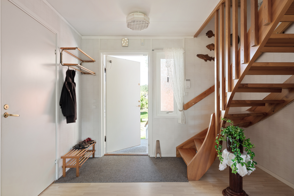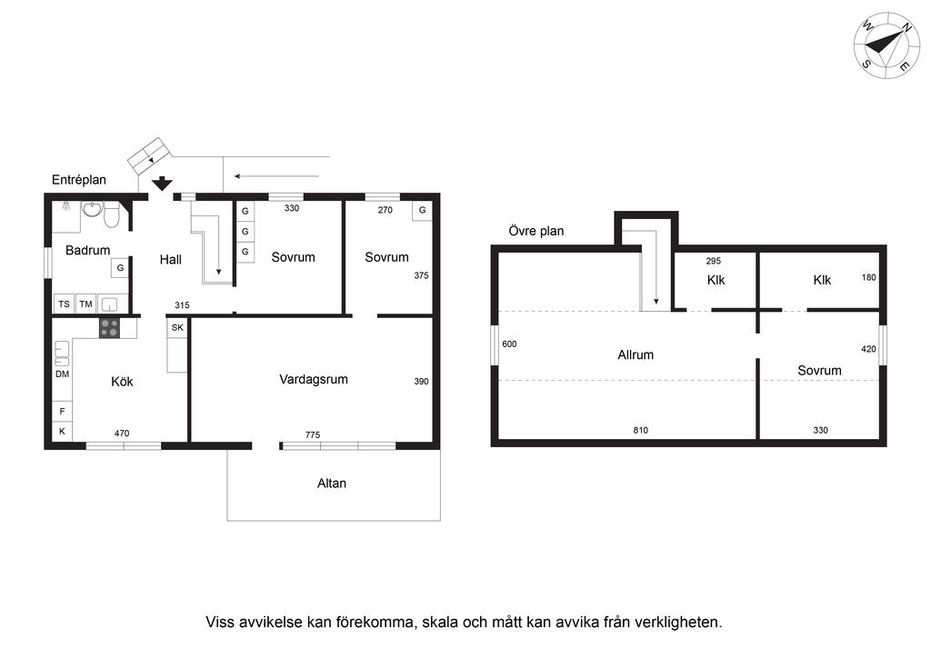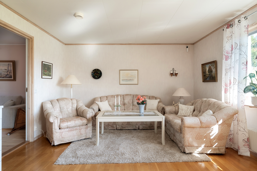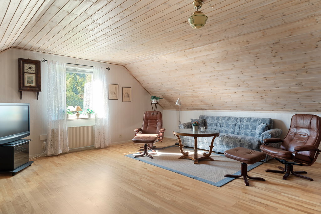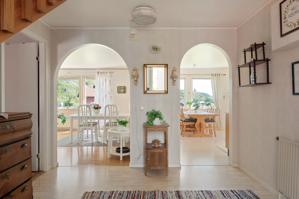Husets planlösning är generös och hemtrevlig, skapad för att skapa både gemenskap och avskildhet. På entréplanet välkomnas du av en rymlig hall som leder vidare till ett praktiskt kök, ett badrum kombinerat med tvättstuga, tre sovrum i varierande storlekar samt ett stort vardagsrum med plats för middagar och umgänge, dessutom finns där en utgång till altanen. På övre plan öppnar sig ett ljust allrum tillsammans med förvaringsutrymme och ytterligare ett sovrum. Ja, det här är ett hem som är redo för nästa kapitel, där nästa ägare kan flytta in och successivt låta den egna prägeln växa fram.