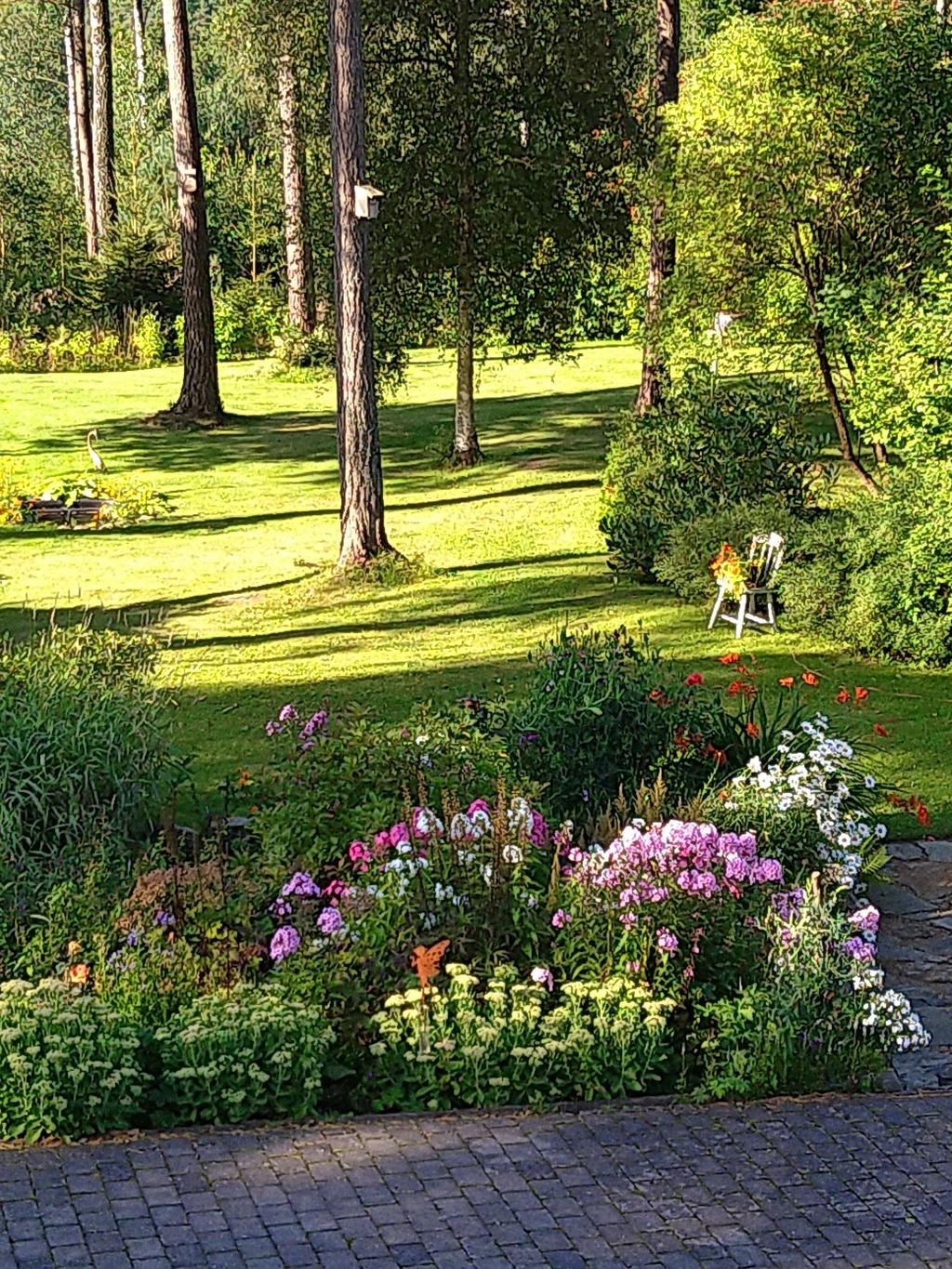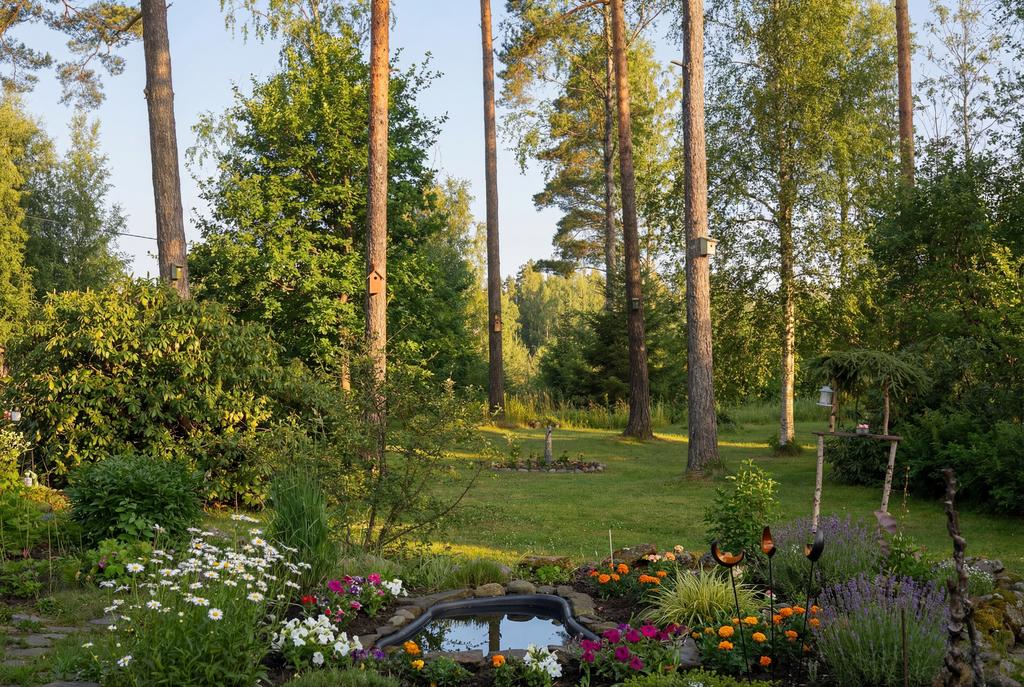 Trädgården är en grönskande oas och en plats att njuta av odling, blomsterprakt och stilla stunder. Därtill finns även utrymme för barnens lek på den stora gräsmattan. I omgivningarna hemma på Häröd finns mängder av härliga promenadstigar där det går att finna fynd i form av både bär och svamp.