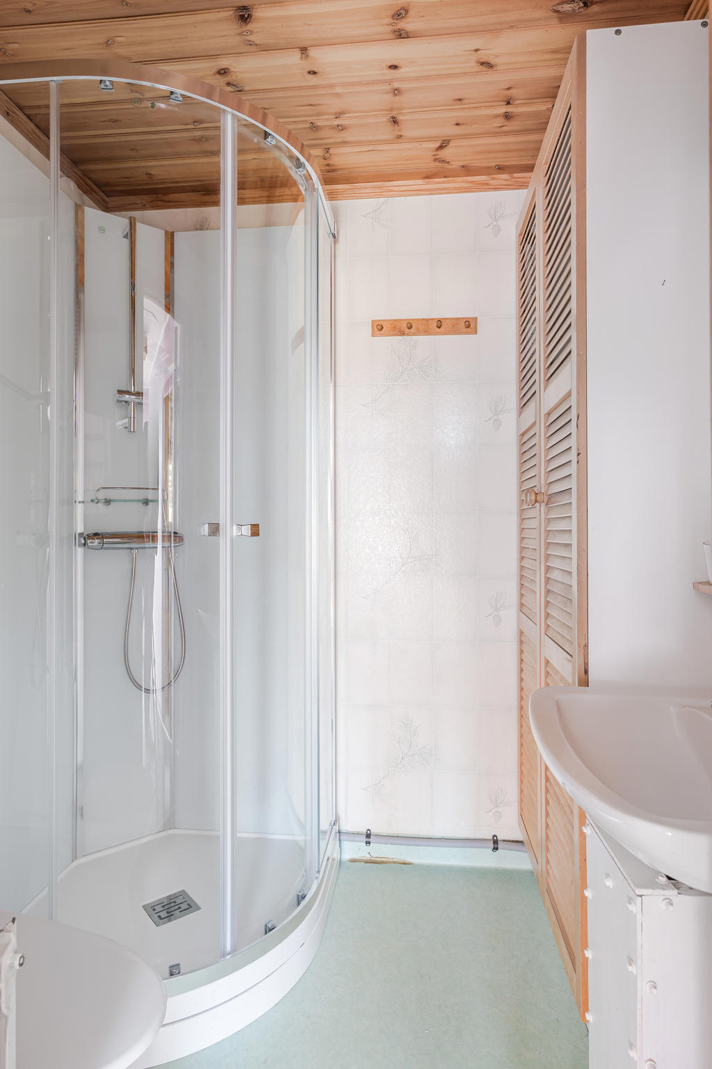 Boningshuset om ca 130 kvm erbjuder en stabil grund med bra tak, bra fönster samt energieffektiv uppvärmning via luft/vatten-värmepump. Invändigt finns renoveringsbehov.