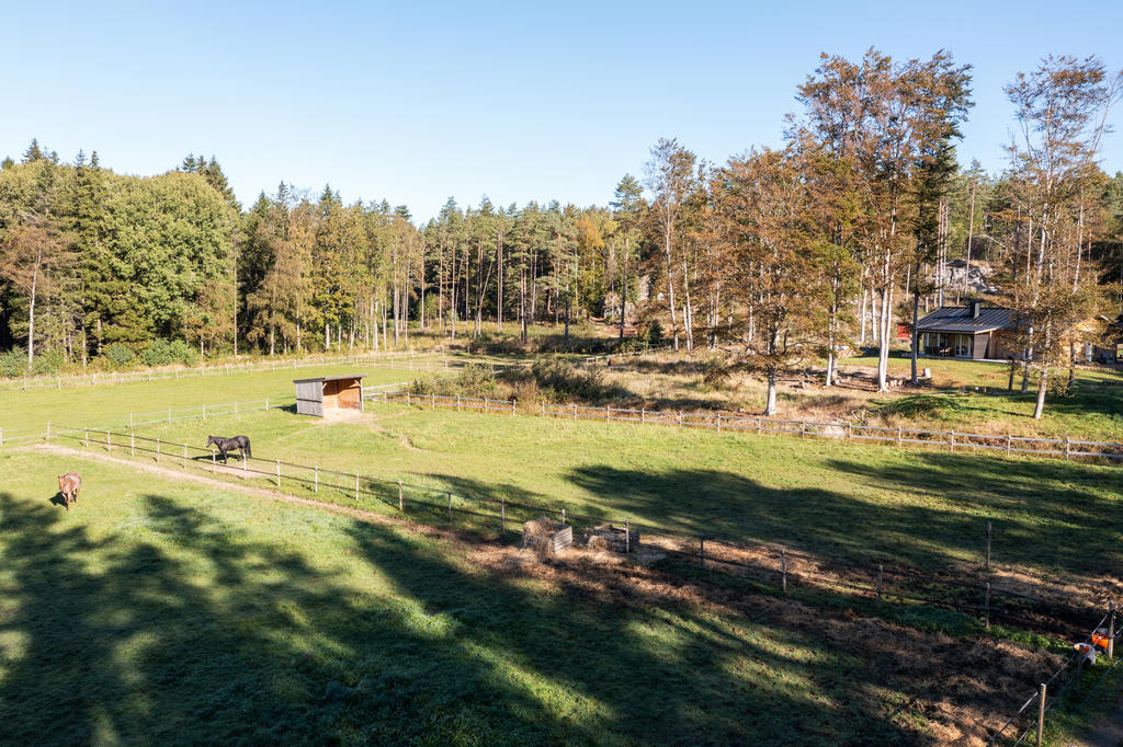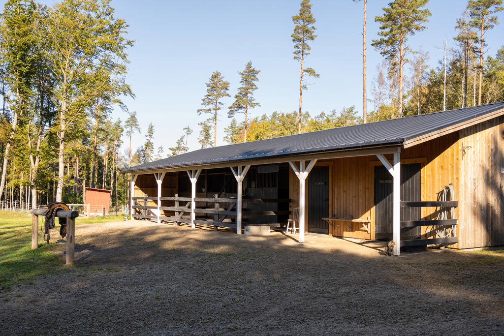 Här finner du tre rymliga boxar för hästarna, två ordinarie boxar och en fölbox. I anslutning till boxarna finns stora hagar där hästarna kan beta och njuta av frisk luft. För dem som trivs bättre i en mer naturlig miljö erbjuds även lösdrift, vilket ger hästarna möjlighet att vistas ute i stora, grönskande ytor och interagera socialt med varandra – något som bidrar till deras välbefinnande.