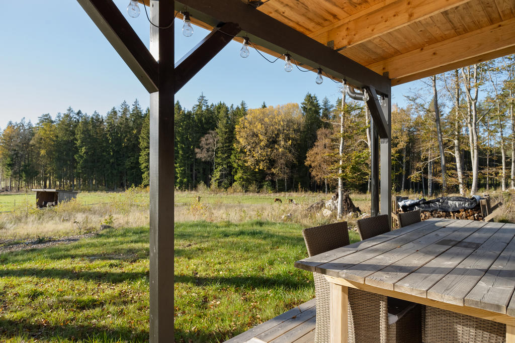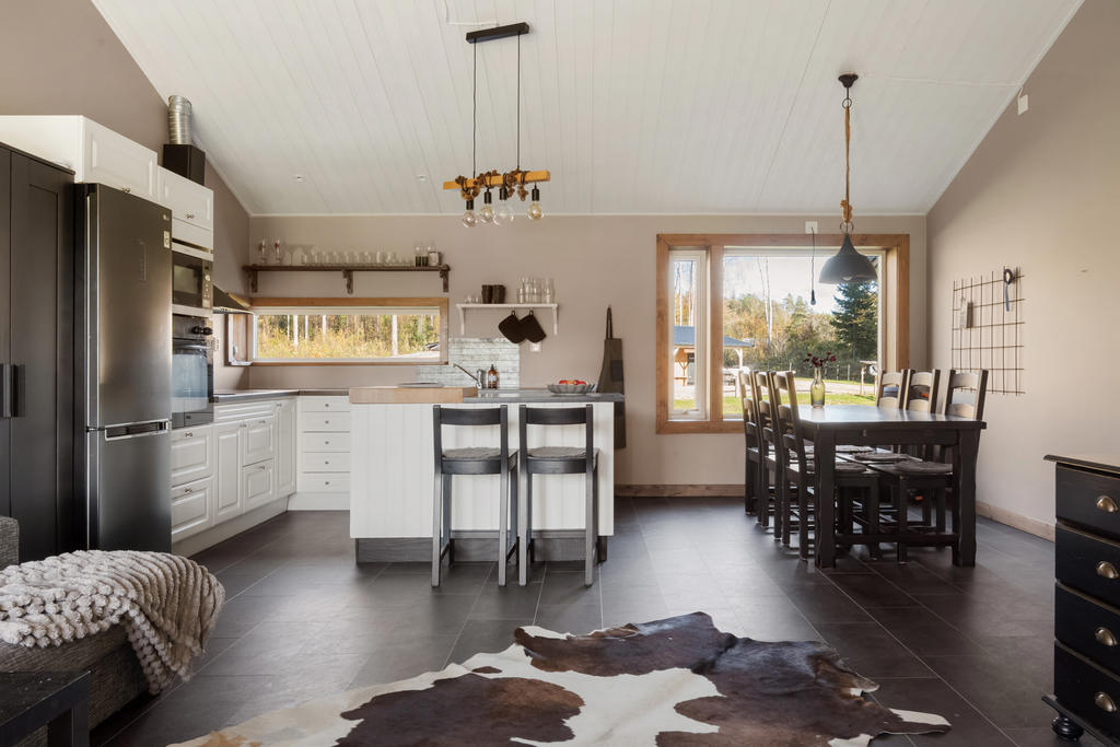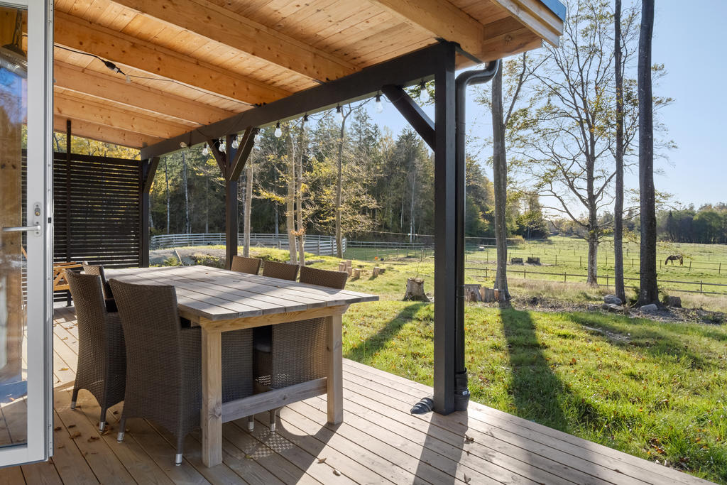 Ranchen är inspirerad av amerikanska byggnader för hästhållning. Det nybyggda huset är en perfekt kombination av modern design och amerikansk lantlig charm. Uthyrningsdelen ger dig flexibilitet och möjligheter att skapa extra intäkter eller ha nära och kära på besök. De ljusa och luftiga rummen skapar en trivsam atmosfär där du kan koppla av efter en dag med hästarna.