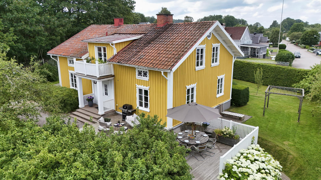 Huset, som uppfördes 1886, har varsamt vårdats genom åren och erbjuder generösa ytor med hela 162 + 112 kvadratmeter fördelade över två plan och källare. De stora rummen, den gedigna atmosfären och de bevarade detaljerna skapar en känsla av värme och historia som genomsyrar hela hemmet. Renoveringen har genomförts med respekt för husets själ – gamla detaljer har lyfts fram, förstärkts och fått nytt liv, samtidigt som moderna bekvämligheter smidigt vävts in. Entréplan har stora sociala ytor, kök som kan ta emot många gäster, totalt fem sovrum och helkaklat badrum.