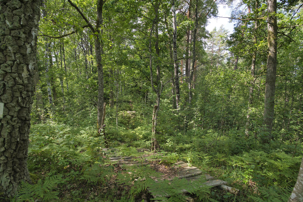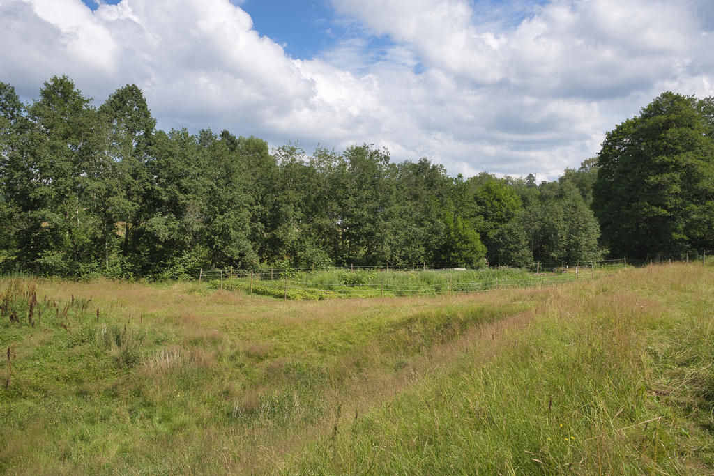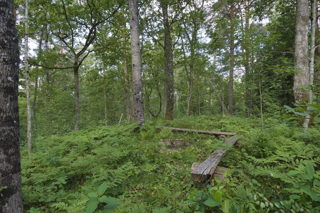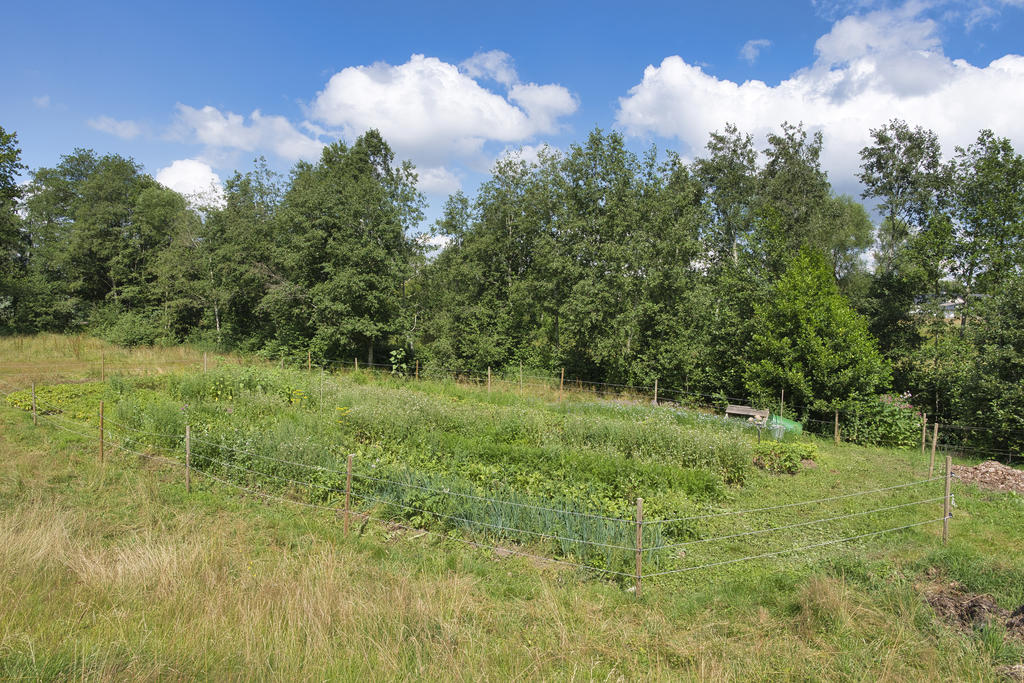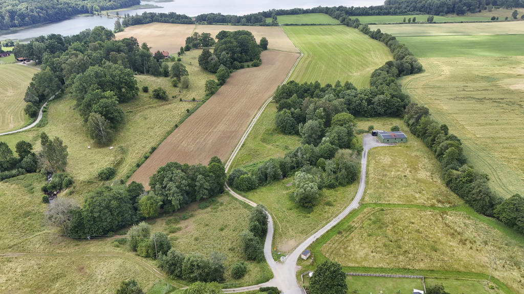 Till fastigheten hör även en bit åkermark, där grannens hästar betar i lugn och ro och bidrar till den levande landskapsbilden. Lite längre bort breder ett välskött skogsskifte om cirka en hektar ut sig – en egen liten värld av susande träd och mjuka stigar. Här kan man vandra i stillhet, lyssna till naturens rytm och, när behov finns, ta ned träd för eget bruk.