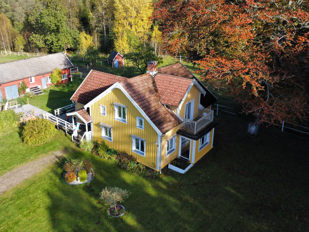 På tomten står även ett mindre hus om cirka 30 kvm, avskilt placerat från huvudbyggnaden. Detta används idag som uthyrningsbostad med kallhyra, inklusive vatten och avlopp – men det passar lika bra för gäster, egen verksamhet eller tonårsbarn som vill ha lite eget.