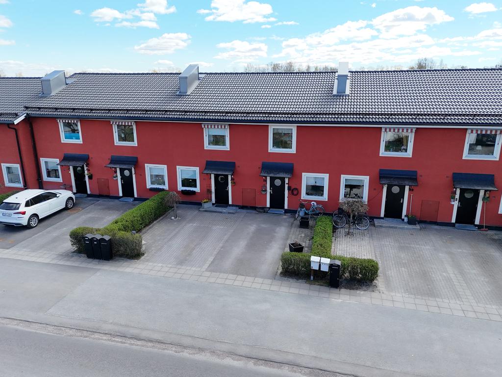 Fristående radhus med egen parkeringsplats framför huset med el-bilsladdare.