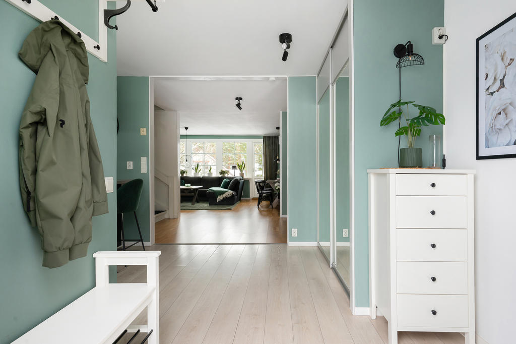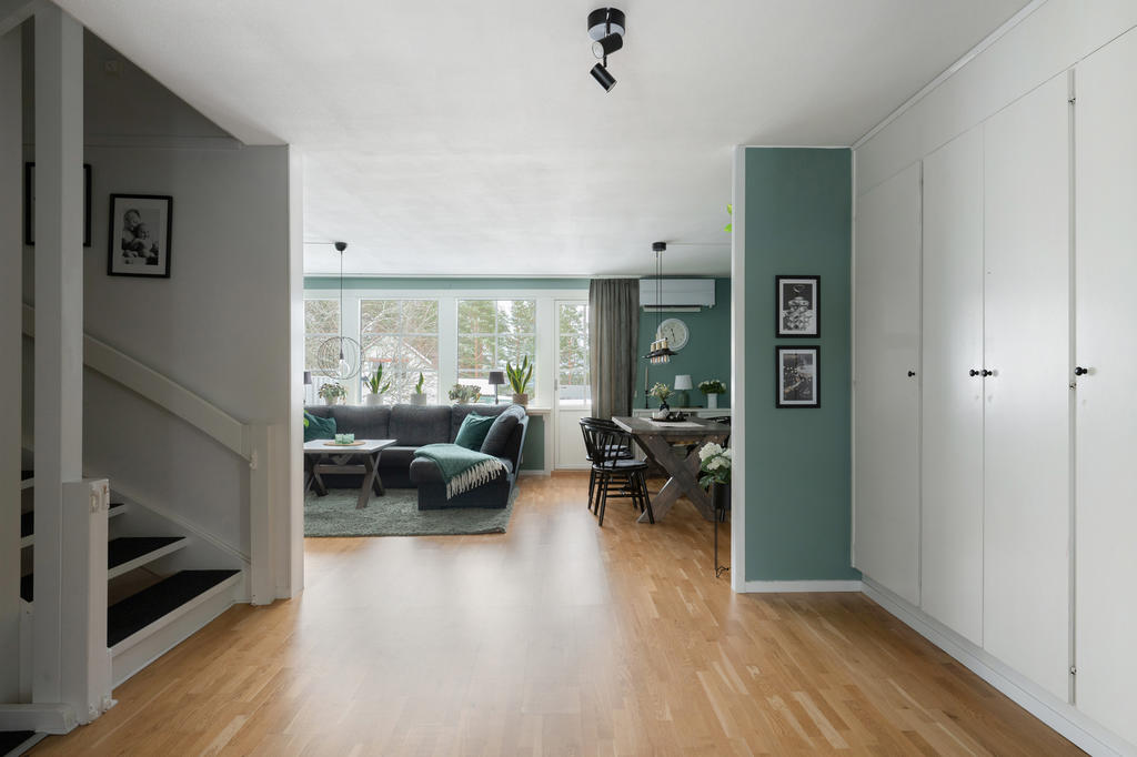 Smakfullt och lättskött radhus i barnvänligt område. Garage och dubbla uteplatser.
