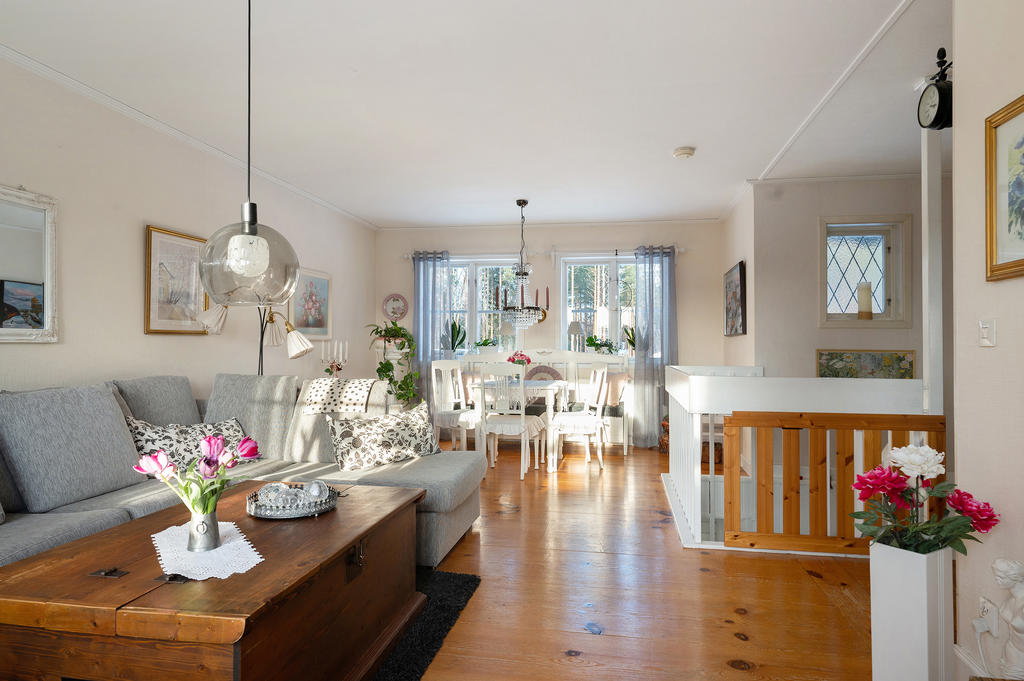 Välskött timmervilla med fint läge och sjöutsikt.