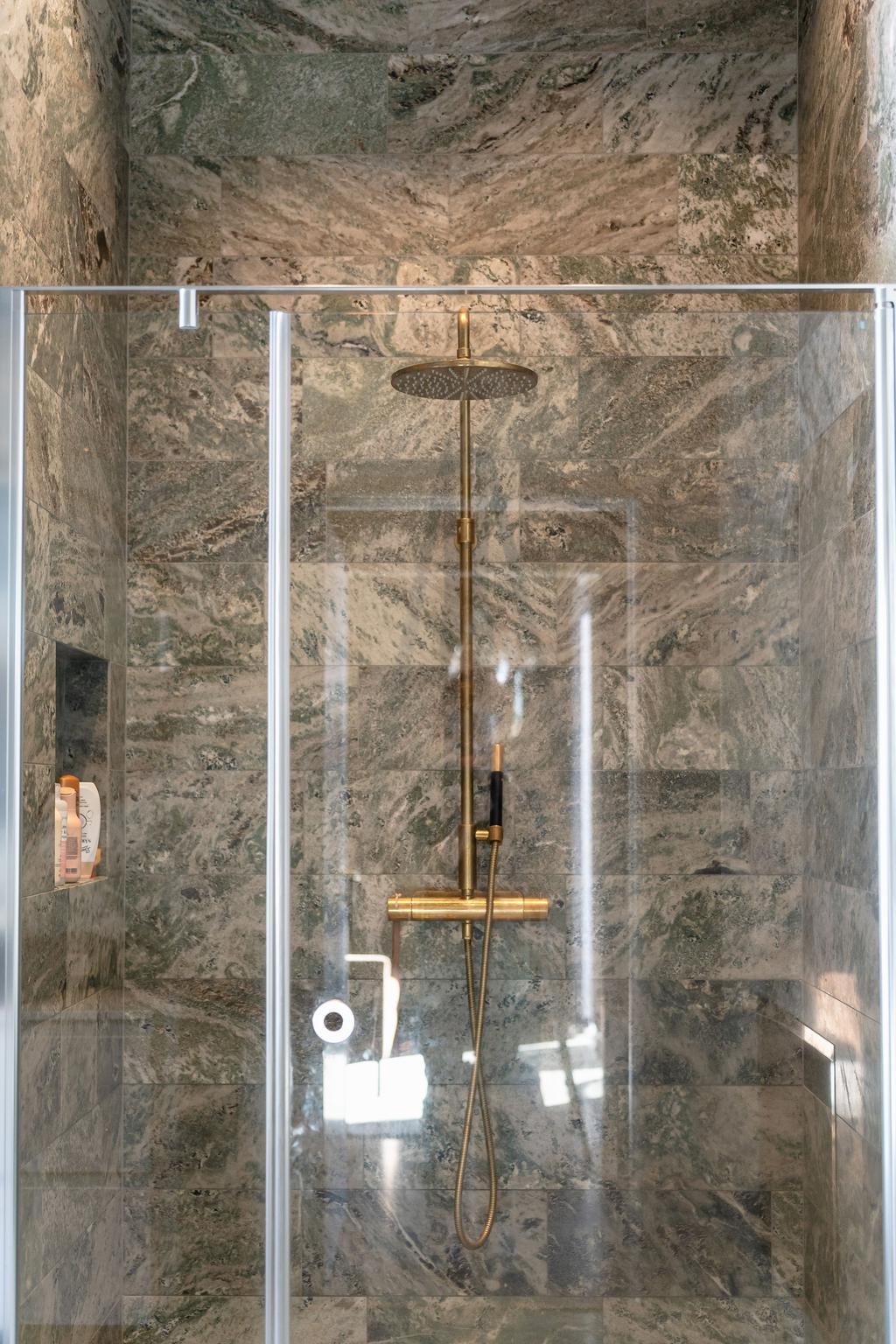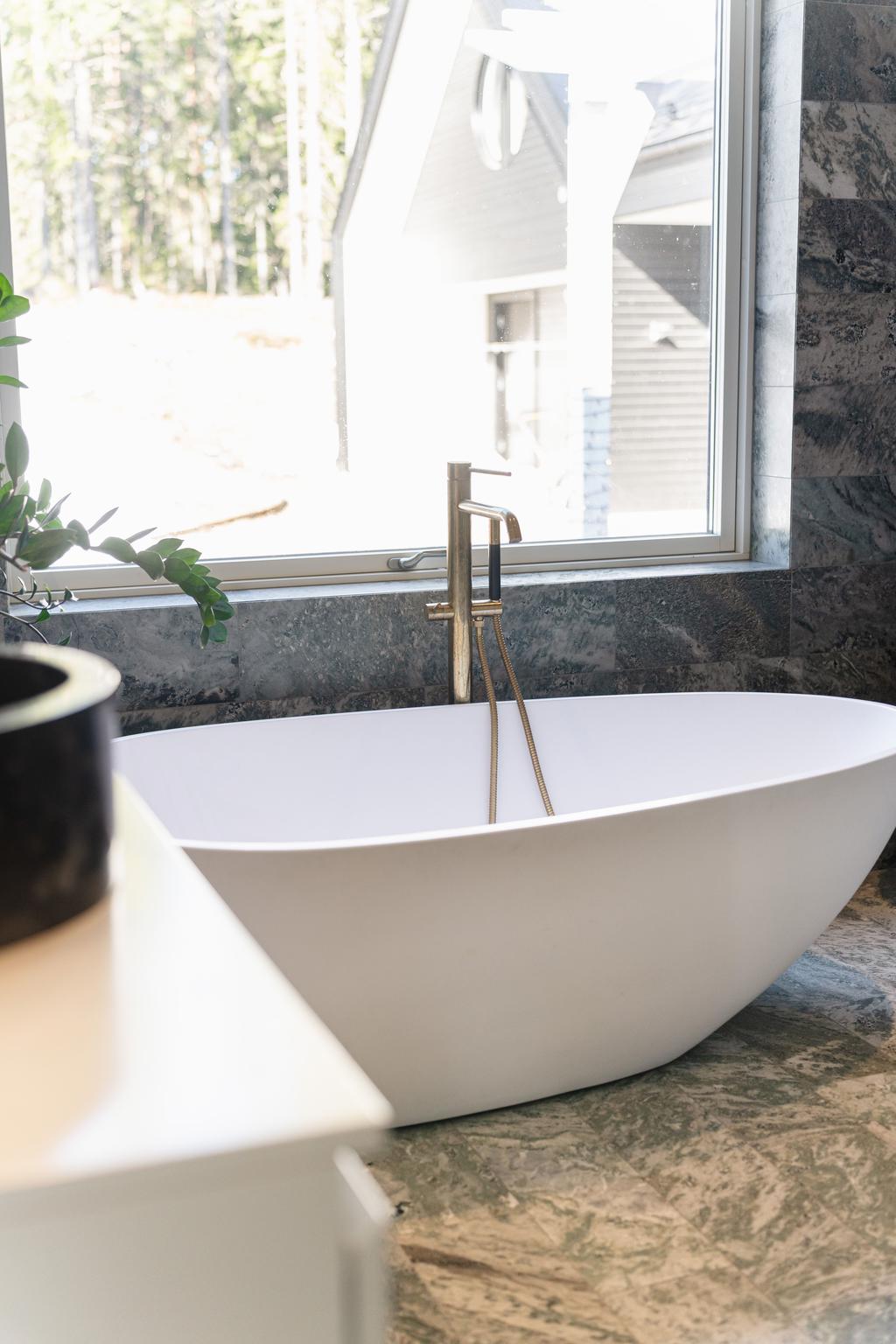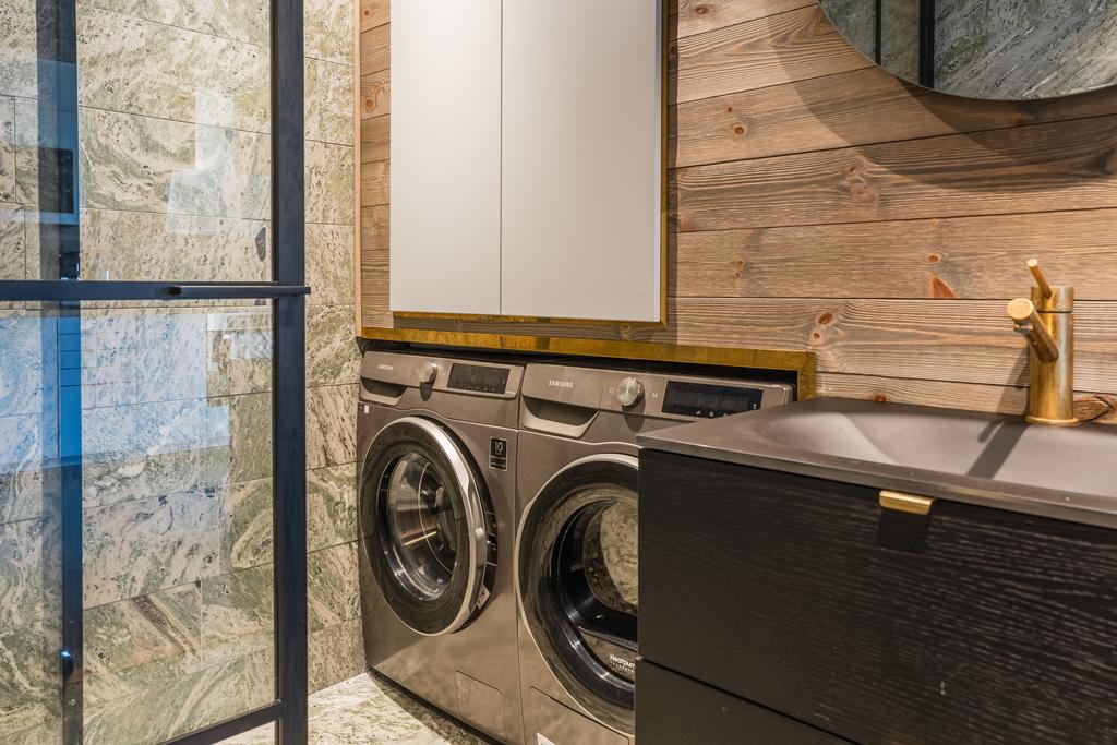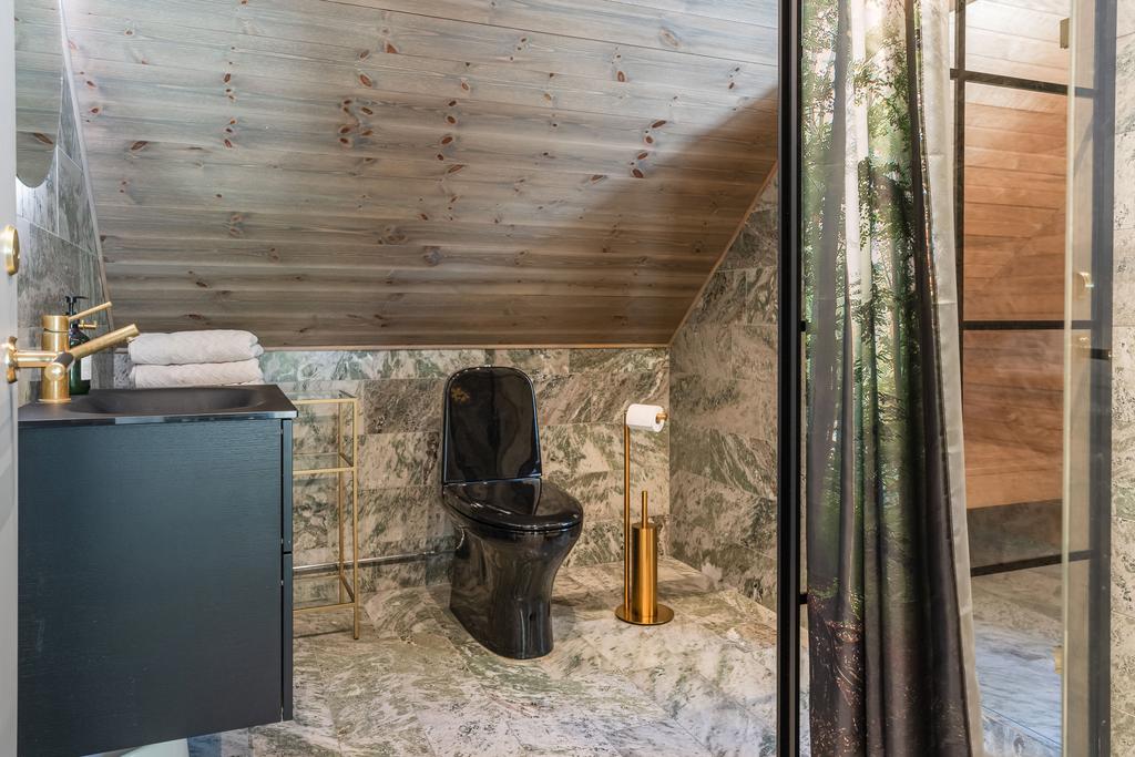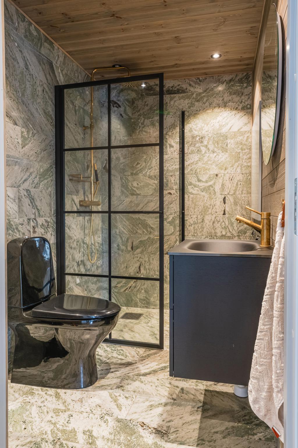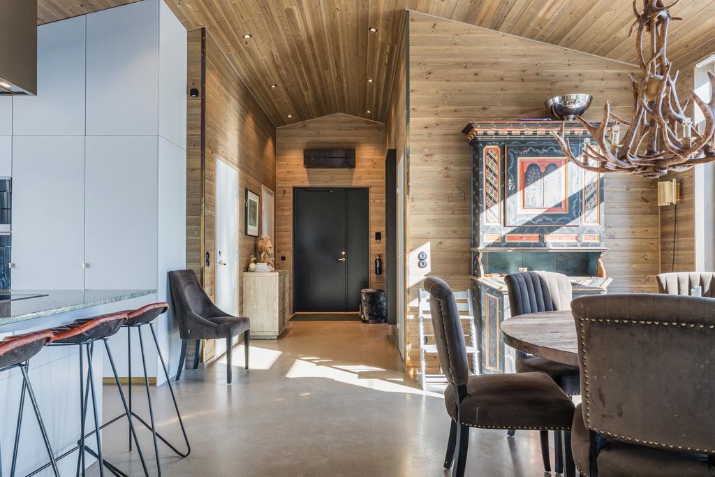 Inrett av Slettvoll i samspel med Artwood och exklusiv belysning. Badrum i kolmårdsmarmor med takduschar och mässingsdetaljer. Exteriört präglas fastigheten av sten, granit och plåttak från Järvsö Plåt. Entrén i kraftigt timmer med skiffergolv sätter tonen direkt vid ankomst.