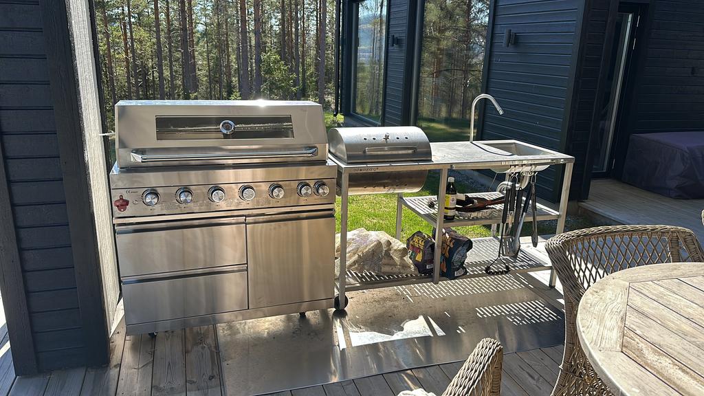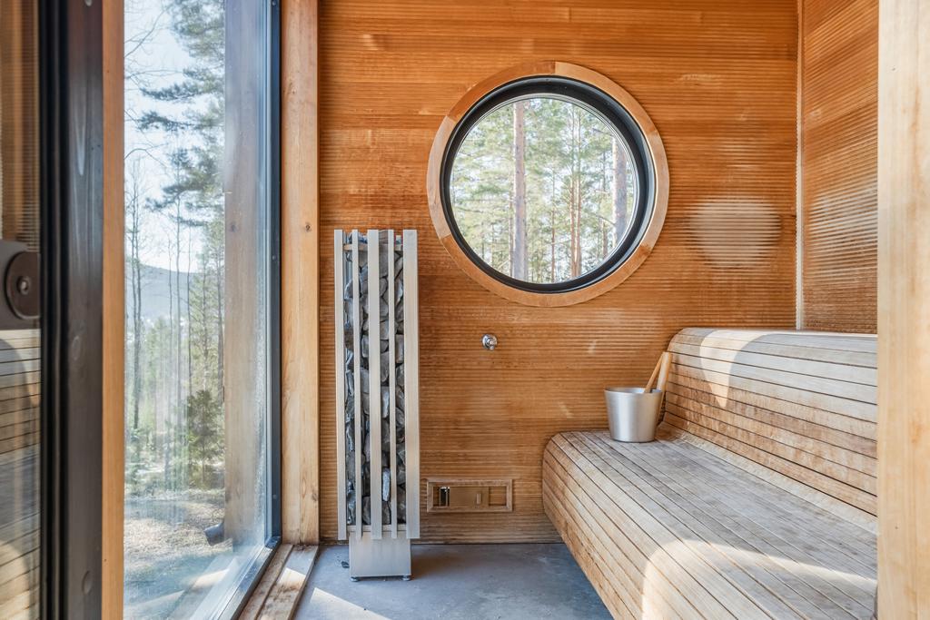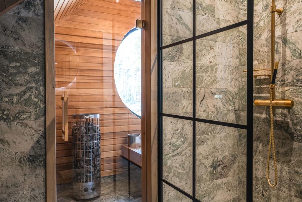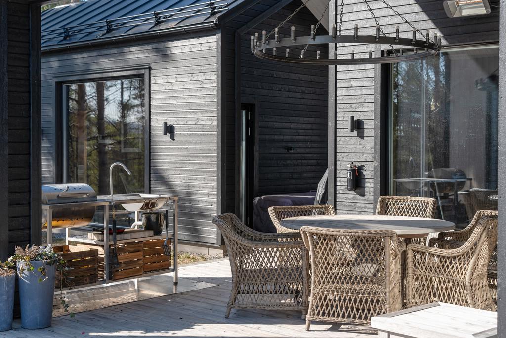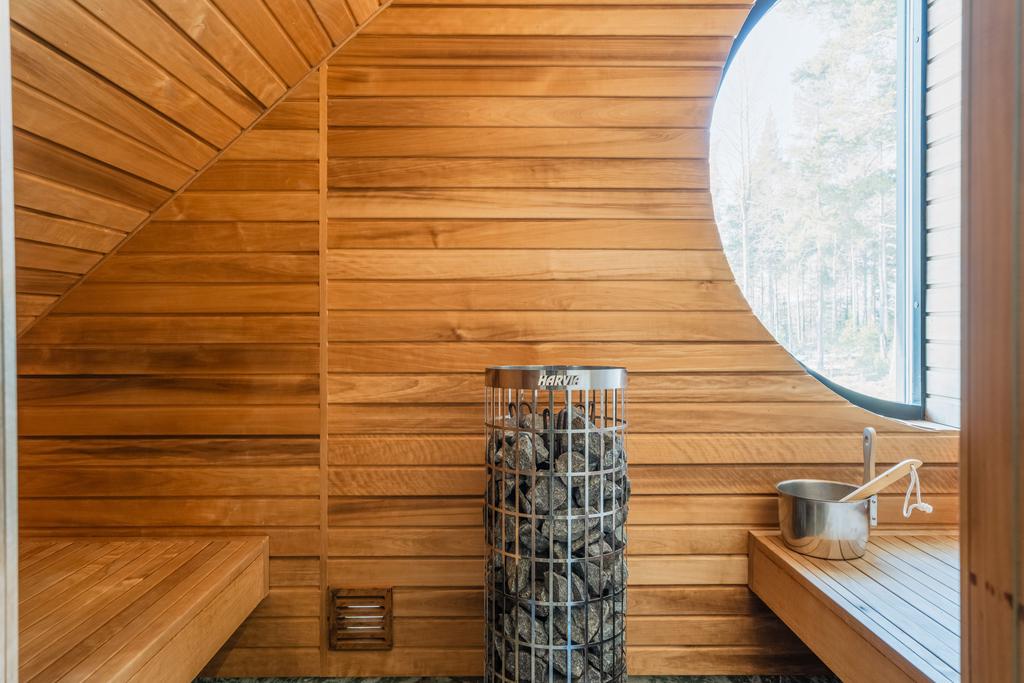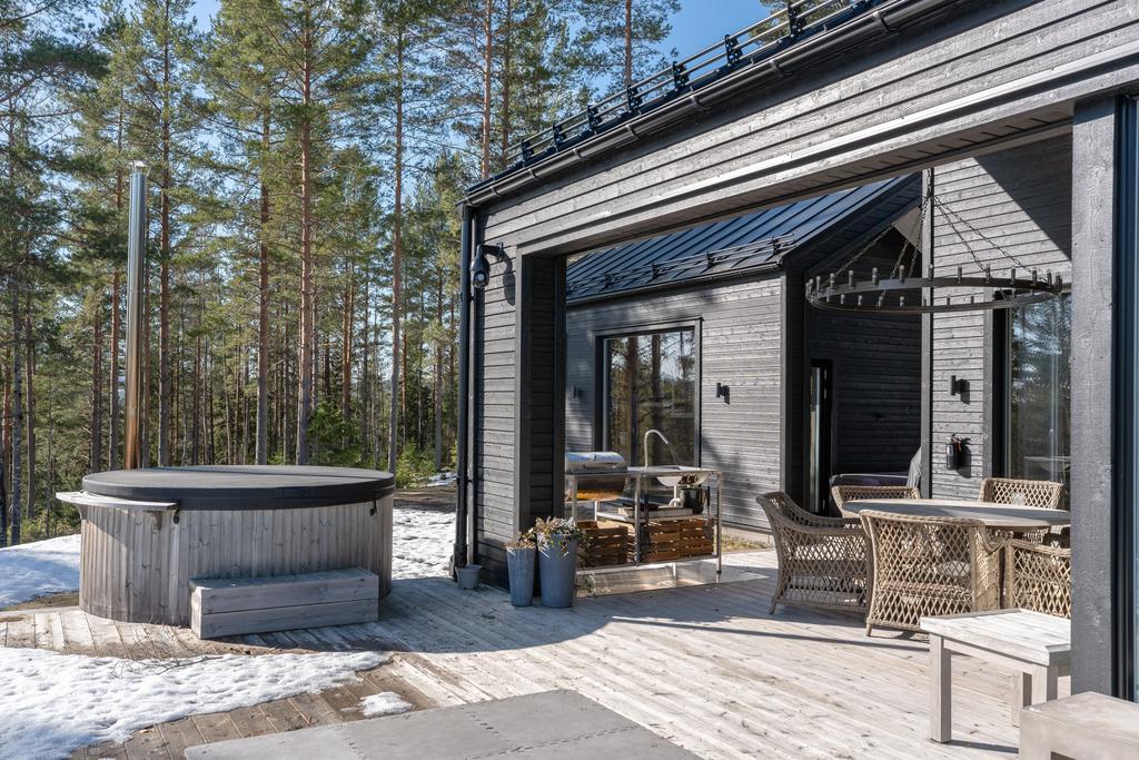 Spaavdelning med bastu, bad, relax, bar, utedusch och kallbad skapar en privat wellnessmiljö året runt. Utomhus finns även utekök och uppvärmt spa.