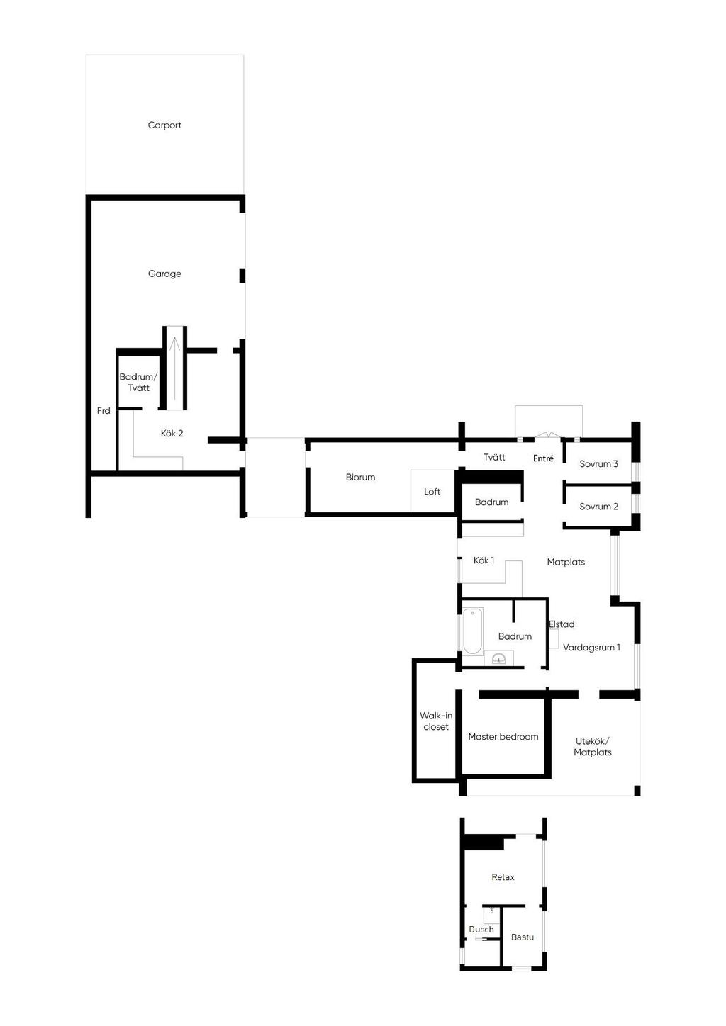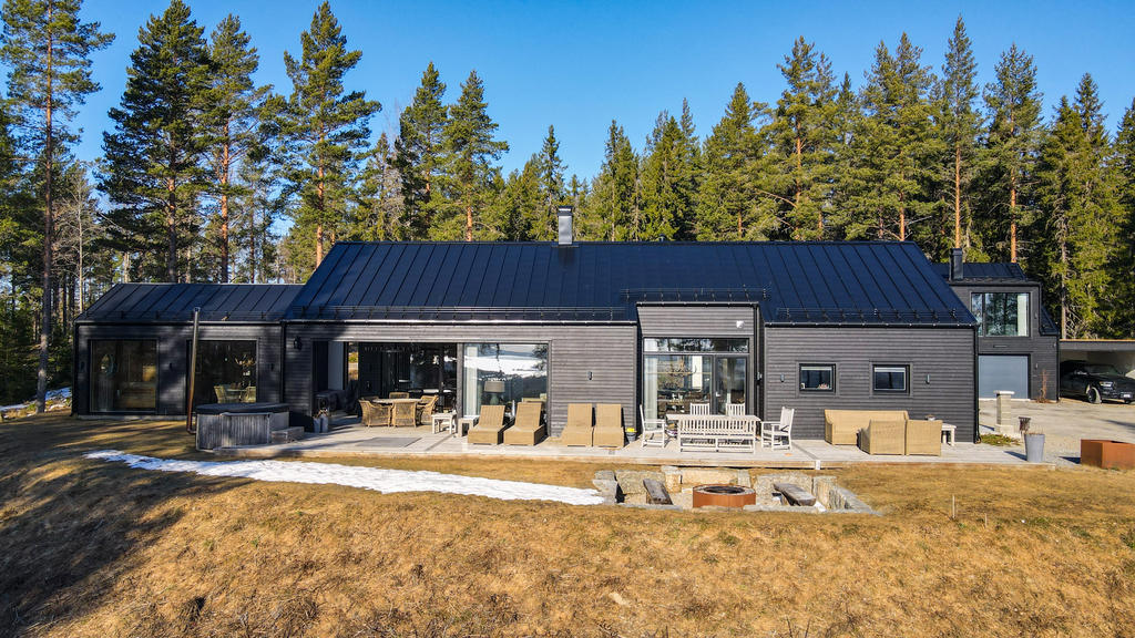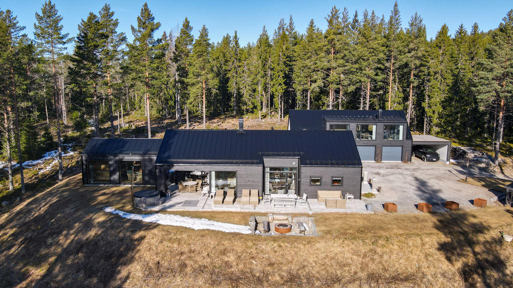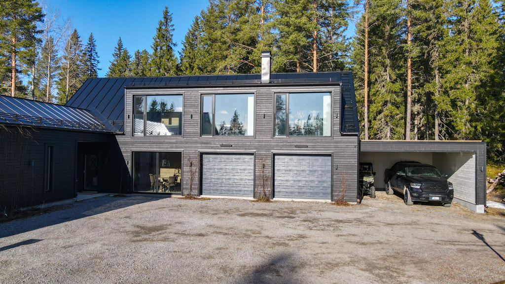 Totalt 17 bäddar med möjlighet till fler. Smarta tekniska lösningar inklusive TV-installationer från Samsung och Sony. Dubbelgarage, carport för två bilar och garageinredning från Pela.