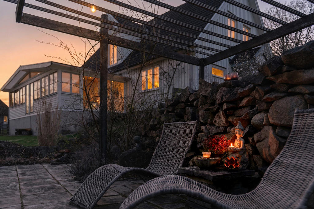 Bostaden erbjuder idag fyra sovrum, med möjlighet att enkelt skapa ett femte för den som behöver ännu mer plats. Här finns gott om utrymme för den stora familjen, med stora sociala ytor både på entréplan och ovanvåning. På entréplanet möts ni av en öppen och inbjudande planlösning med ett stort kök med köksö som hemmets naturliga samlingsplats, samt ett rymligt vardagsrum där familj och vänner får plats att umgås. Från vardagsrummet nås det nybyggda uterummet om hela 40 kvm, en härlig förlängning av bostaden som skapar ännu mer plats för middagar, firanden och lugna stunder året om.