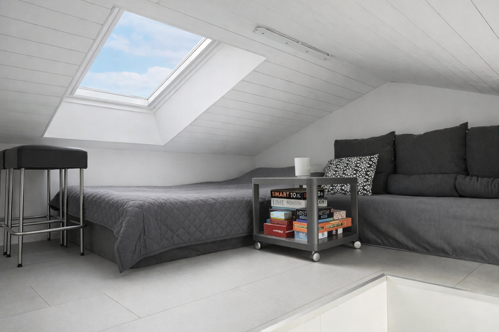 Bostaden rymmer två sovrum i entréplanet med bra ljusinsläpp och plats för både säng och förvaring. Därutöver finns ett mysigt sovloft med takfönster, perfekt som extra sovplats, gästrum eller barnens egen plats.