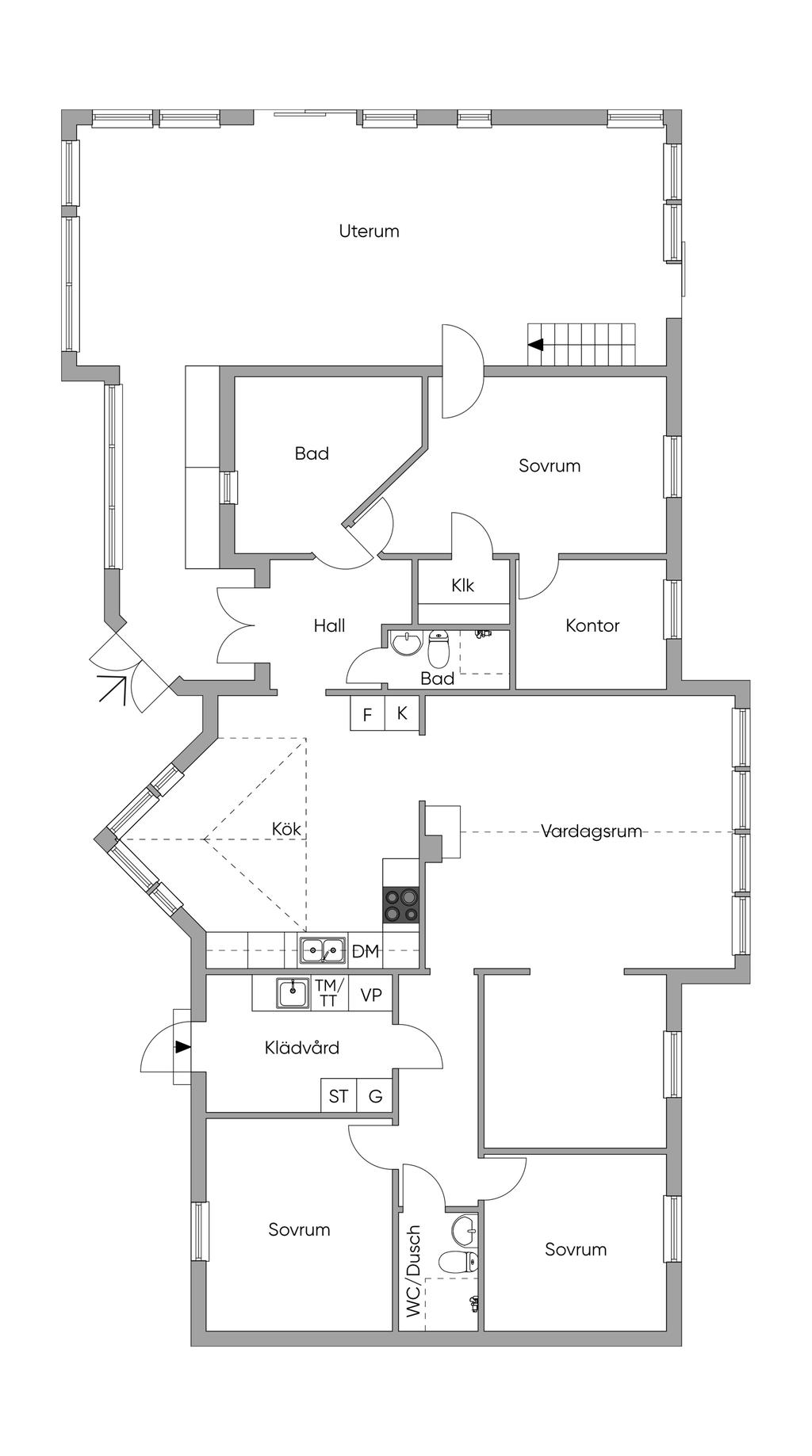 I anslutning till vardagsrummet finns ett rum i fil som blir ett extra allrum för tex. tv-hörna eller bibliotek eller som med enkla medel går att göra om till ett sovrum om behovet finns.