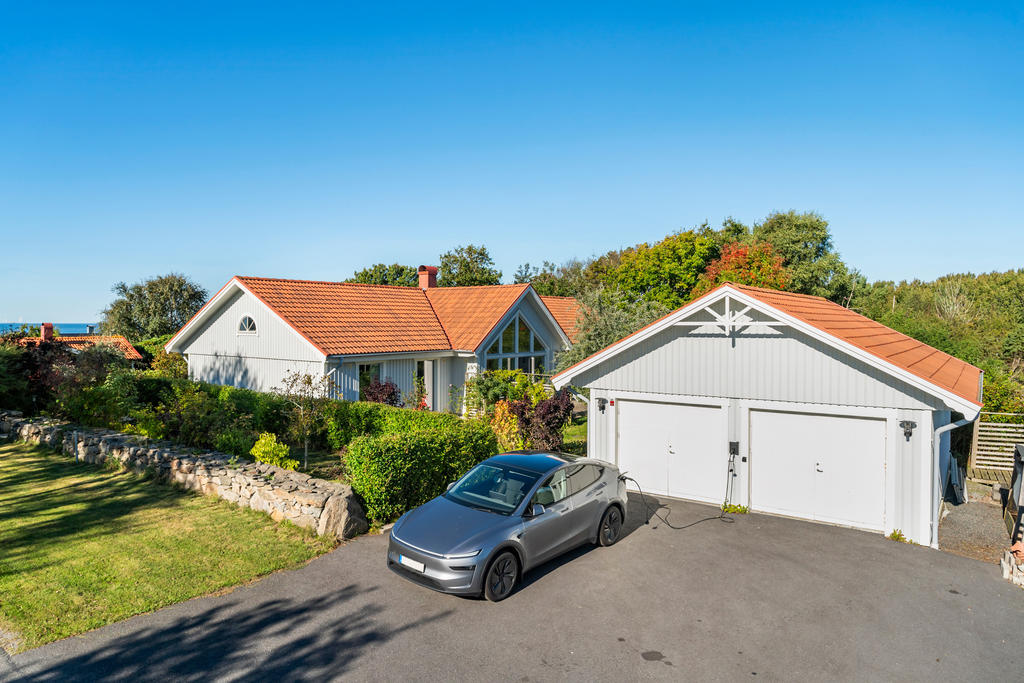 På fastigheten har ni ett friliggande dubbelgaraget som rymmer både bilar, förvaring och har en praktisk hantverkarbänk. Innanför garaget finns ett gediget förråd. På uppfarten finns plats att parkera flera bilar och här finns även en elbilsladdare.