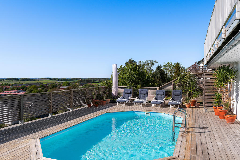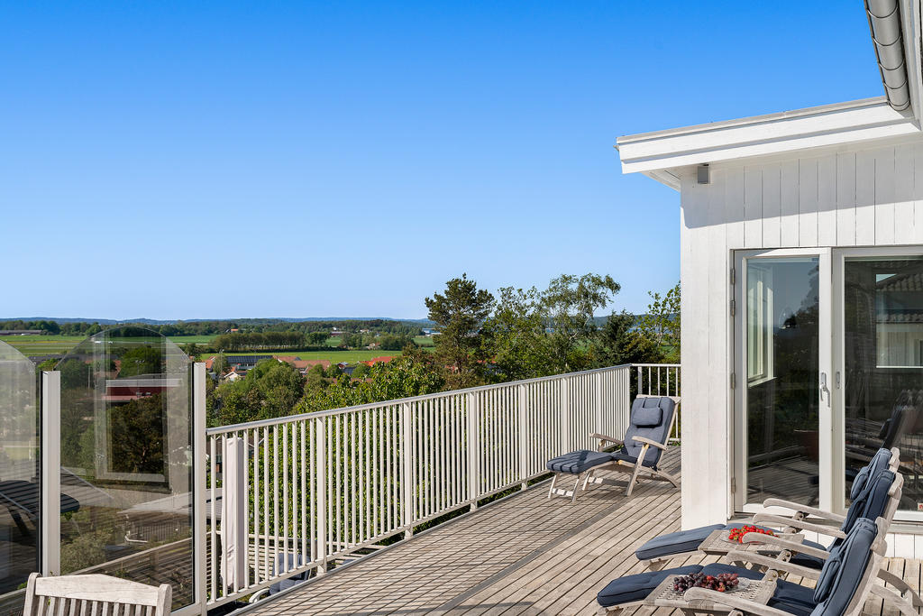 Med ett exceptionellt högt och ogenerat läge, där utsikten sträcker sig milsvid över nejden hela vägen till havet, erbjuds nu ett hem som sällan blir till salu. Här förenas stilren, modern interiör med semesterkänsla i utemiljön – ett boende som präglas av exklusivitet, genomtänkt design och ett energieffektivt leverne. Den sydvästvända placeringen skänker generöst med solljus året om, och från såväl bostadens interiör som dess altaner och poolområde njuter man av den hänförande utsikten. Poolen värms upp med hjälp av solpaneler på taket vilket ger låga driftkostnader, i linje med fastighetens överlag mycket goda energiprestanda.