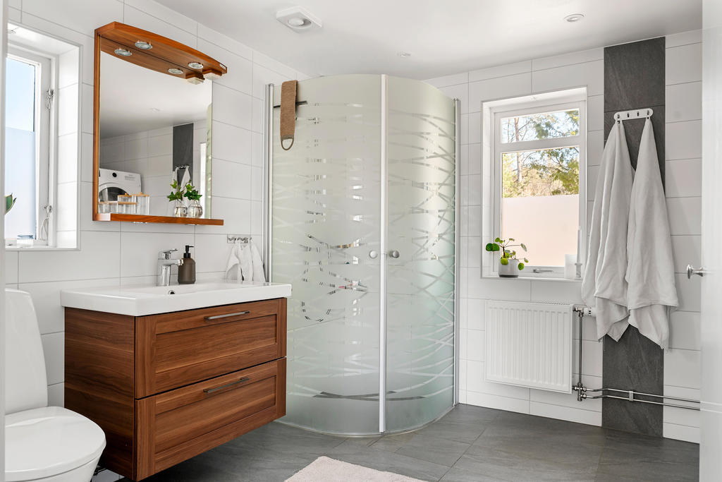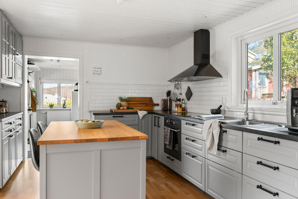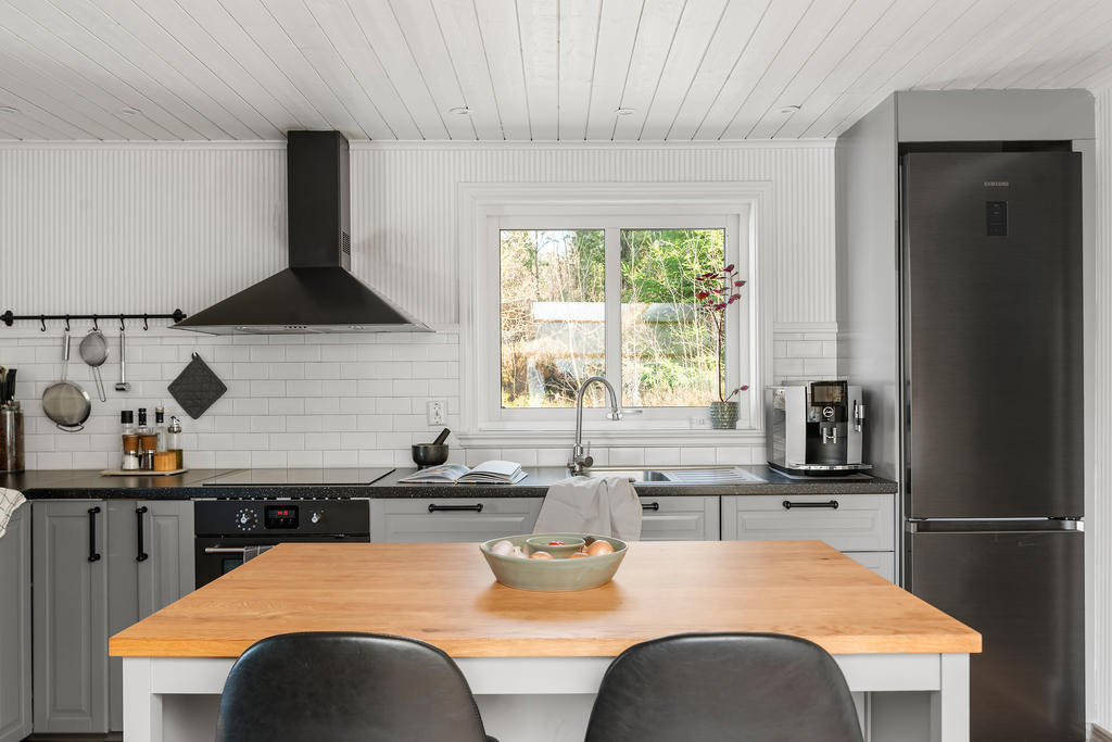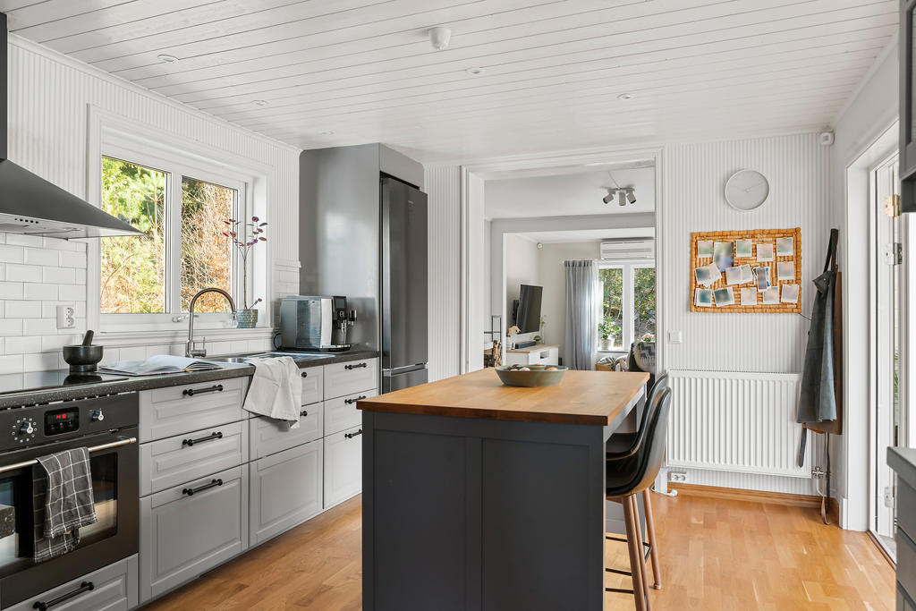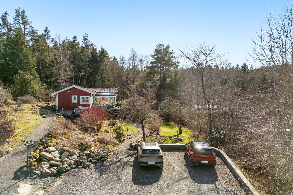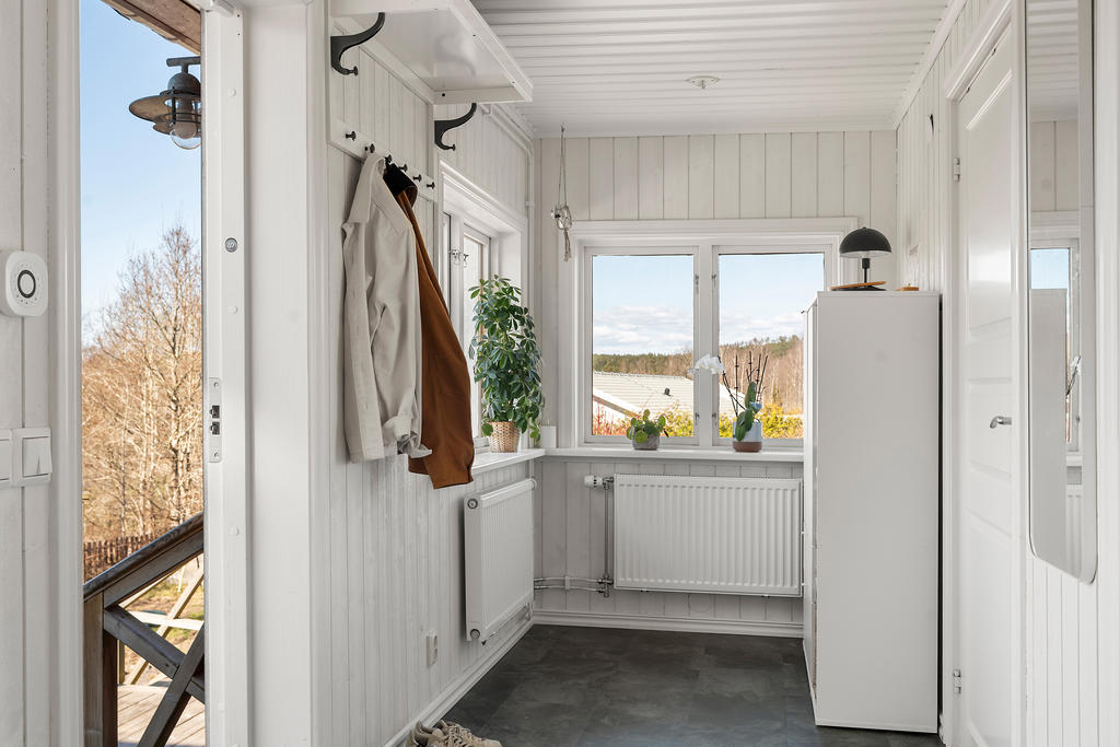 Du kommer in i en trevlig entréhall med plats för klädavhängning. Med direkt anslutning till hallen finner du ett helkaklat, smakfullt, badrum med duschhörna tvättställ med kommod samt wc. Badrummet är intrett med tvättpelare och god förvaring i garderober. Vidare in ligger det stilrena fullt utrustade köket med bra skåps- och lådförvaring samt en köksö som erbjuder gott om arbetsyta, perfekt för både vardagsmatlagning och festliga middagar. Från vardagsrummet kommer du ut till det trevliga uterummet som förlänger sommarmånaderna avsevärt. Välkommen ut till husets lummiga framsida med en underbar uteplats med privat läge, där du kan njuta av lugna stunder i solen eller trevliga grillkvällar med familj och vänner. Uteplatsen erbjuder utsikt över lummig grönska, vilket ger en naturskön och avkopplande miljö. Husets framsida är en riktig oas med det där lilla extra. Från köket vidare in i är du framme i vardagsrummet som är hjärtat av huset, här finns gott om plats till soffgrupp, media och ett större matsalsbord för dina middagsgäster. Här samlas familj och vänner och njuter av varandras sällskap i fridfullheten. I centrum om rummet finns här en braskamin som ger både värme och karaktär. Stora fönsterpartier som släpper in ett vackert dagsljus och bjuder in grönskan från skogen till rummet.